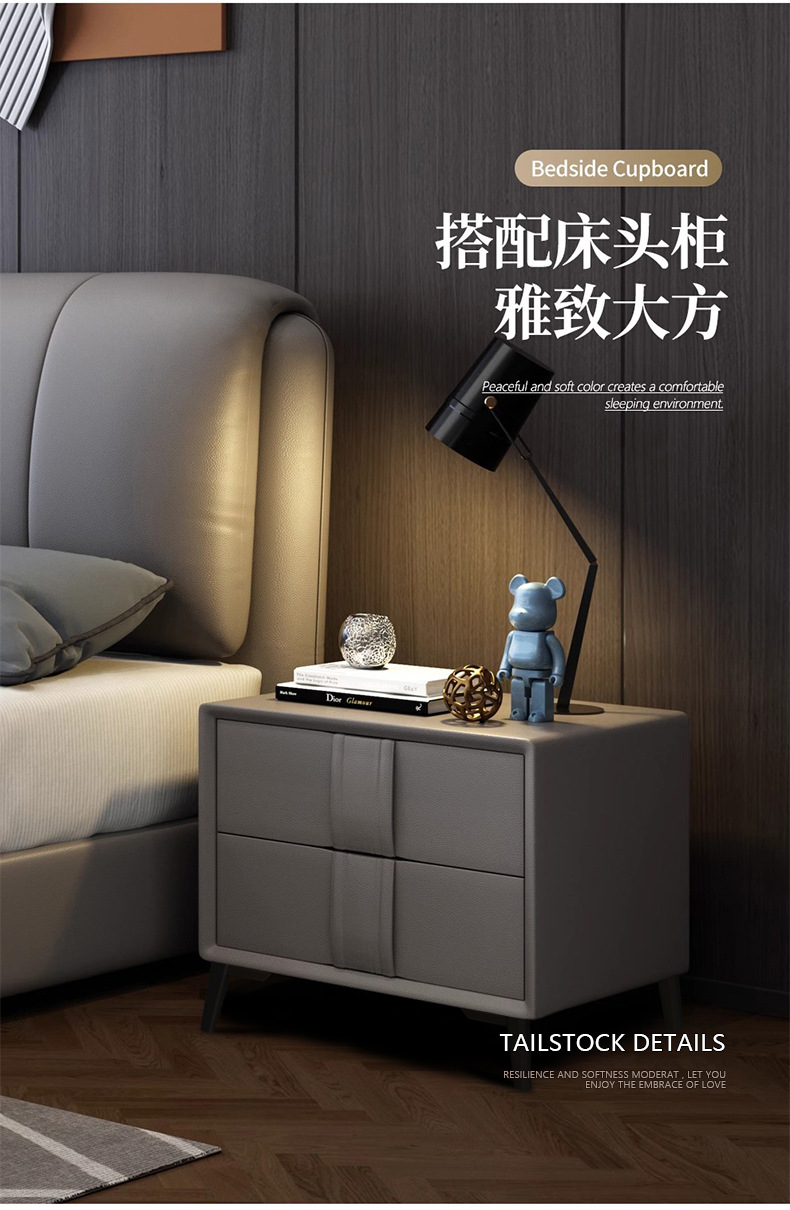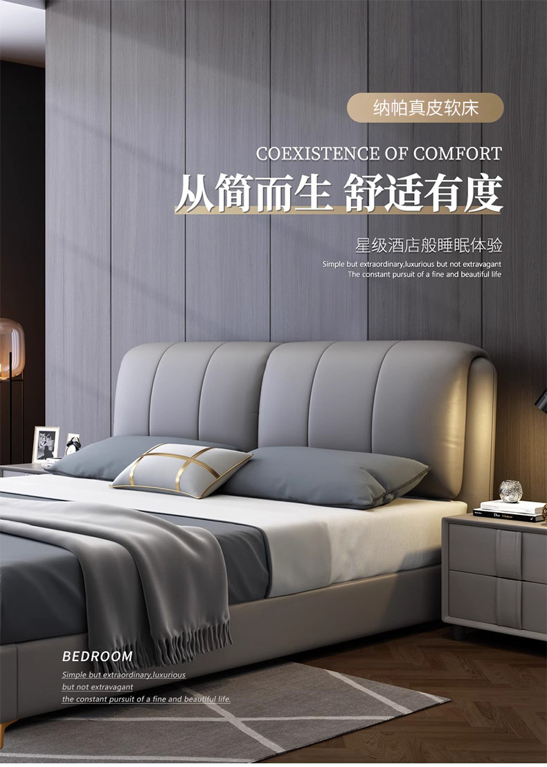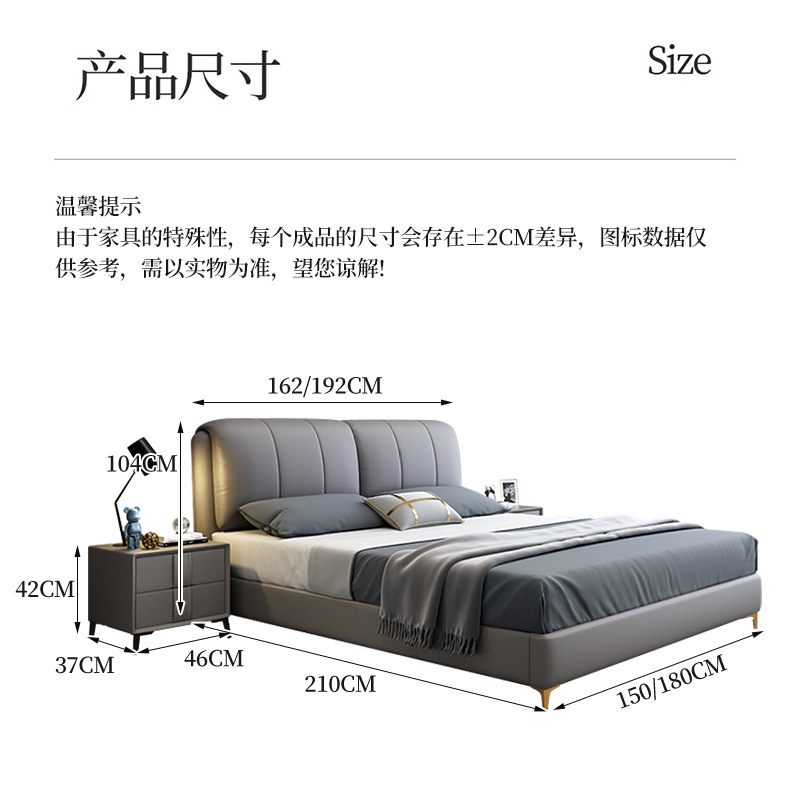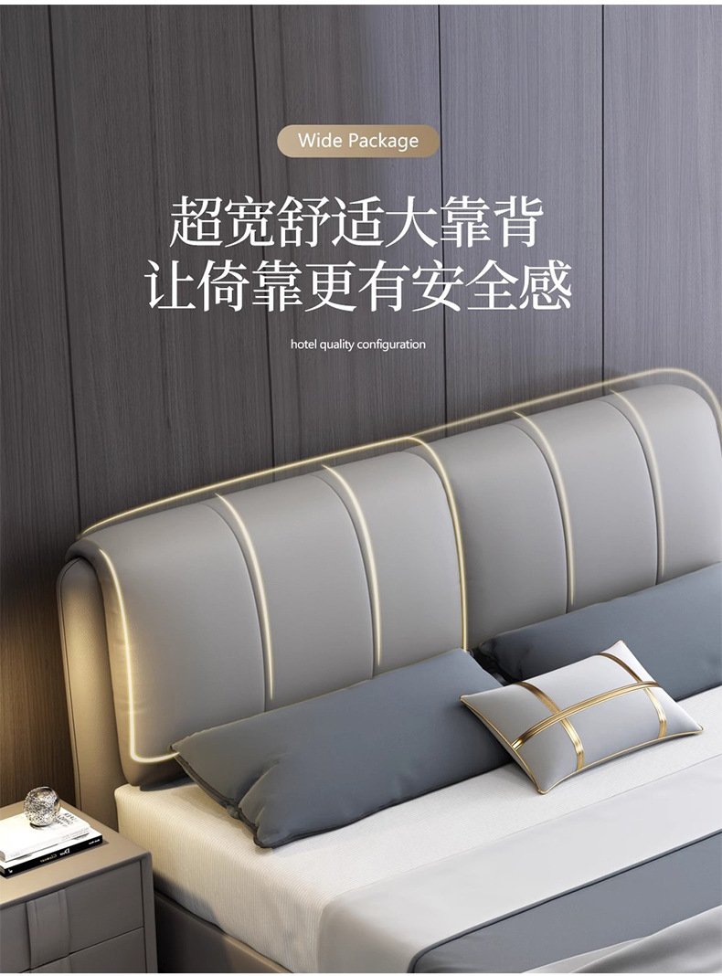 가죽 침대 현대적인 미니멀리스트 1.8m 더블 침대 1.5m 크기 마스터 침실 웨딩 침대 라이트 럭셔리 나파 가죽 침대스토어 가기