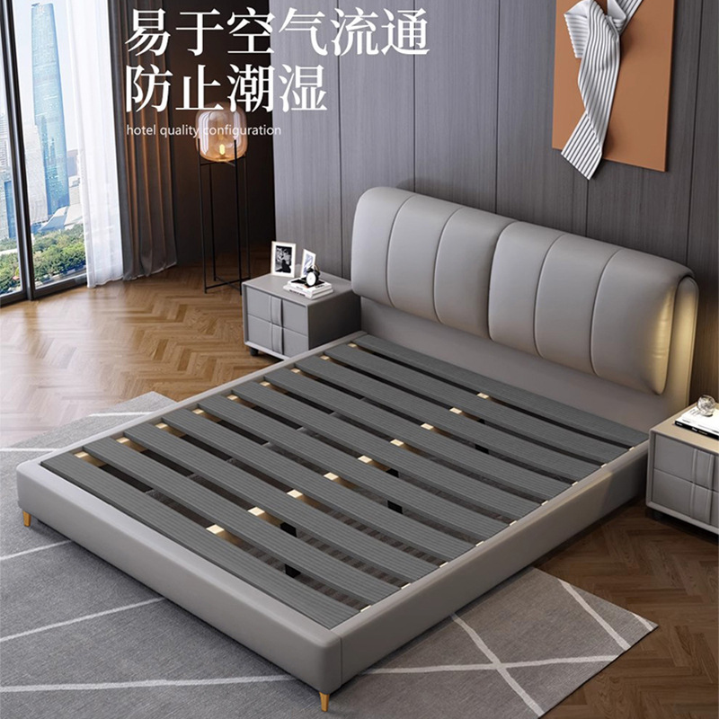 가죽 침대 현대적인 미니멀리스트 1.8m 더블 침대 1.5m 크기 마스터 침실 웨딩 침대 라이트 럭셔리 나파 가죽 침대