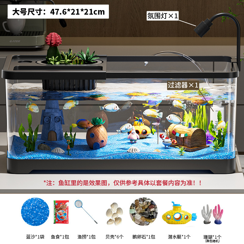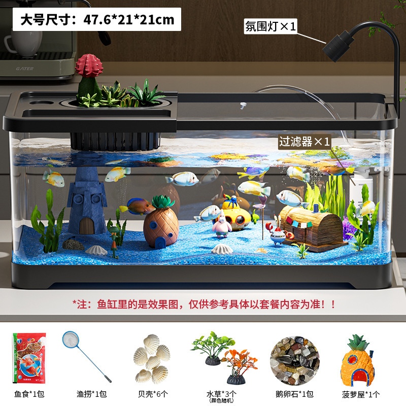 엄선된 어항, 탁상용 붕어 어항, 거실용 필터 및 산소 공급 일체형 수족관, 뚜껑이 있는 생태 조경 금붕어 어항스토어 가기