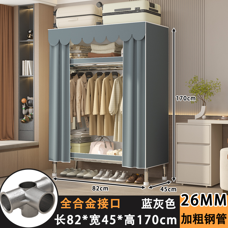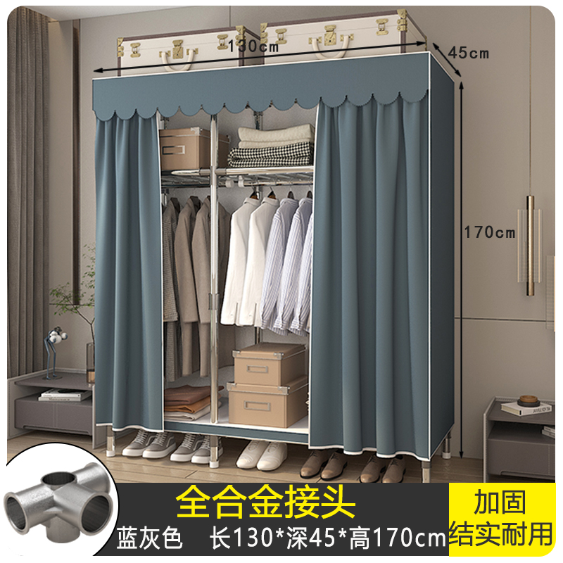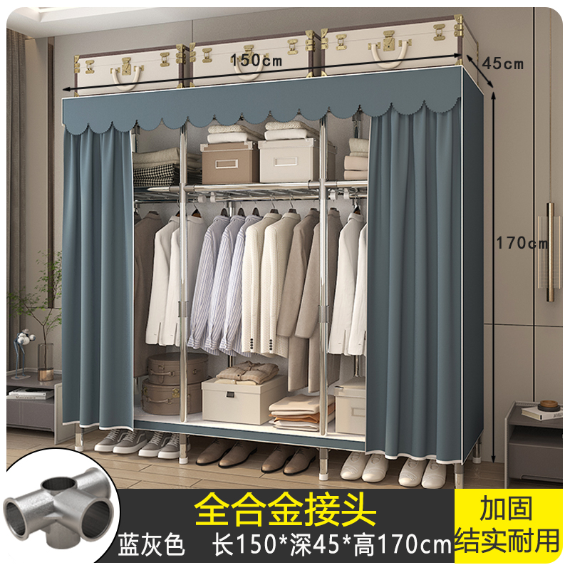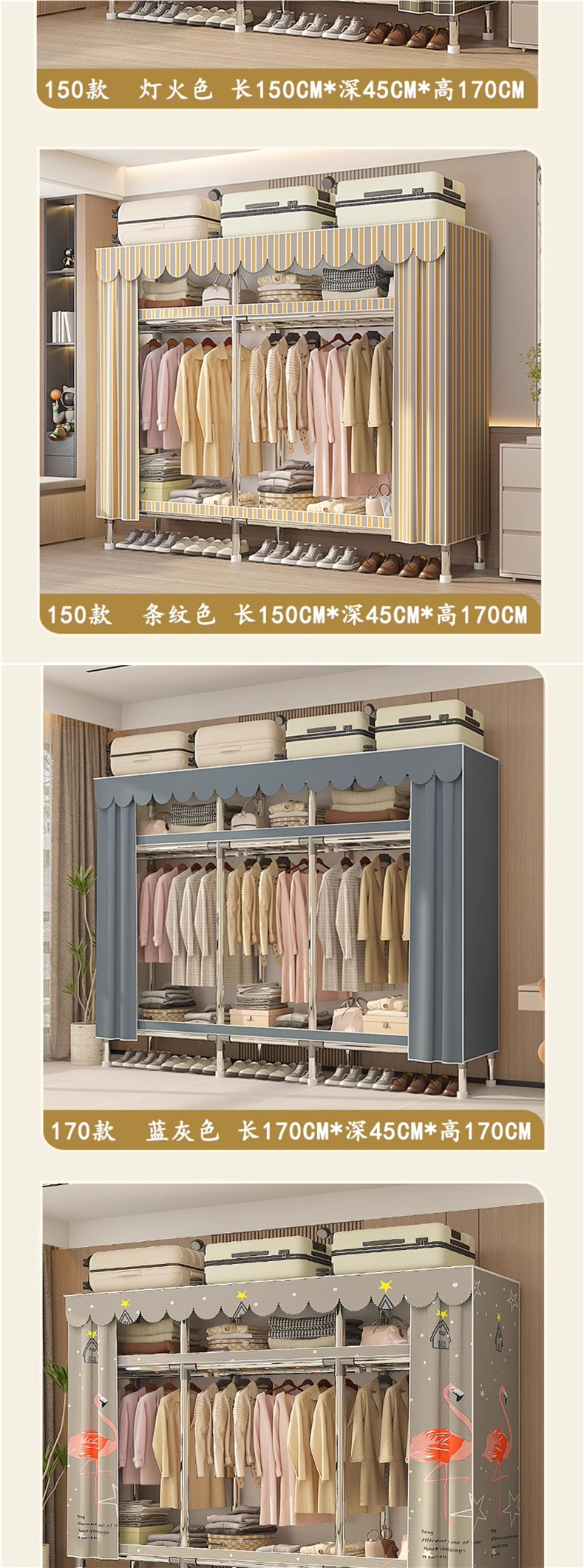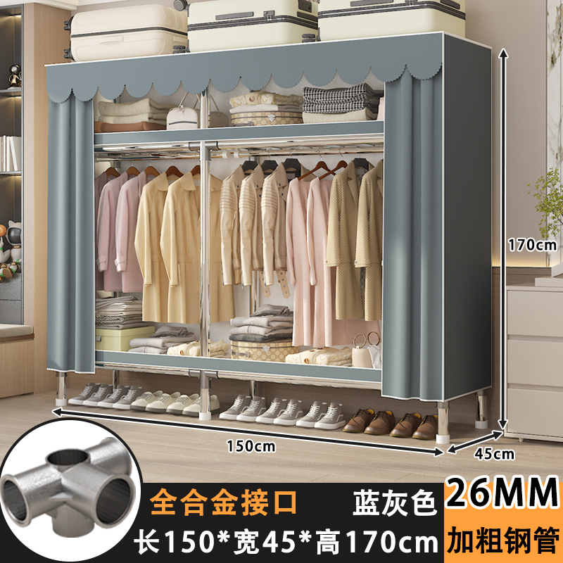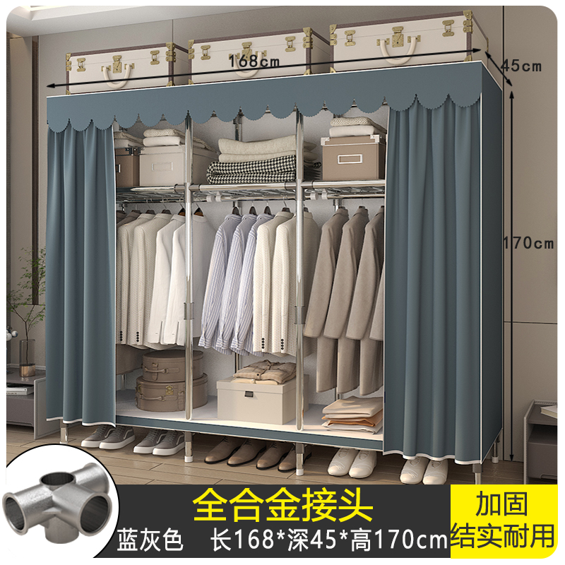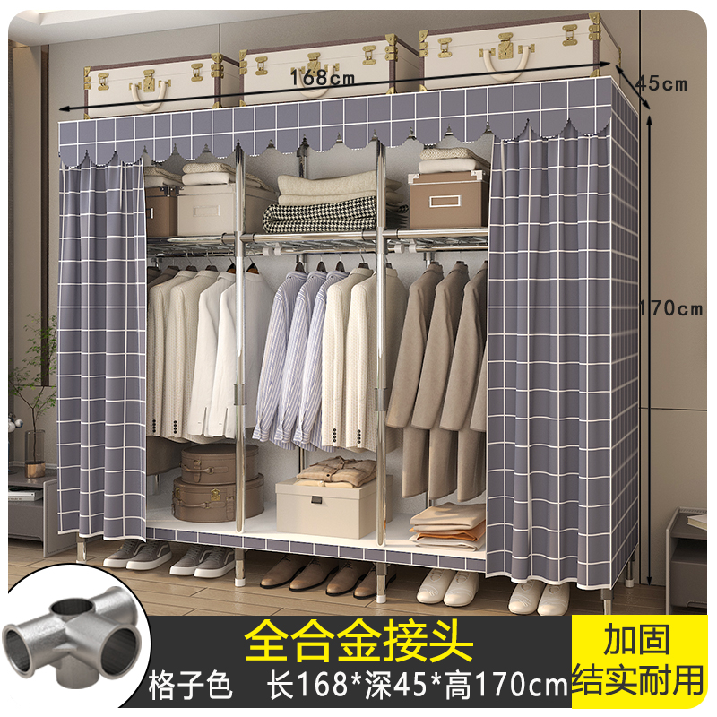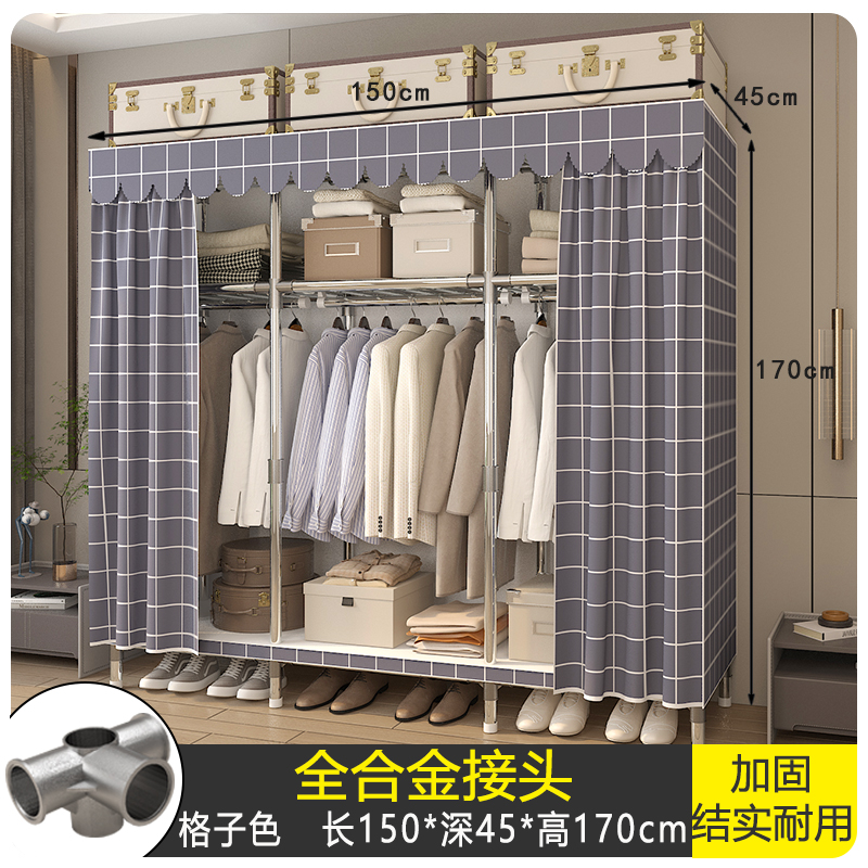 간단한 옷장 강철 파이프 천 옷장 두껍고 강화된 침실 조립 가정용 옷장 임대실 옷 보관 선반