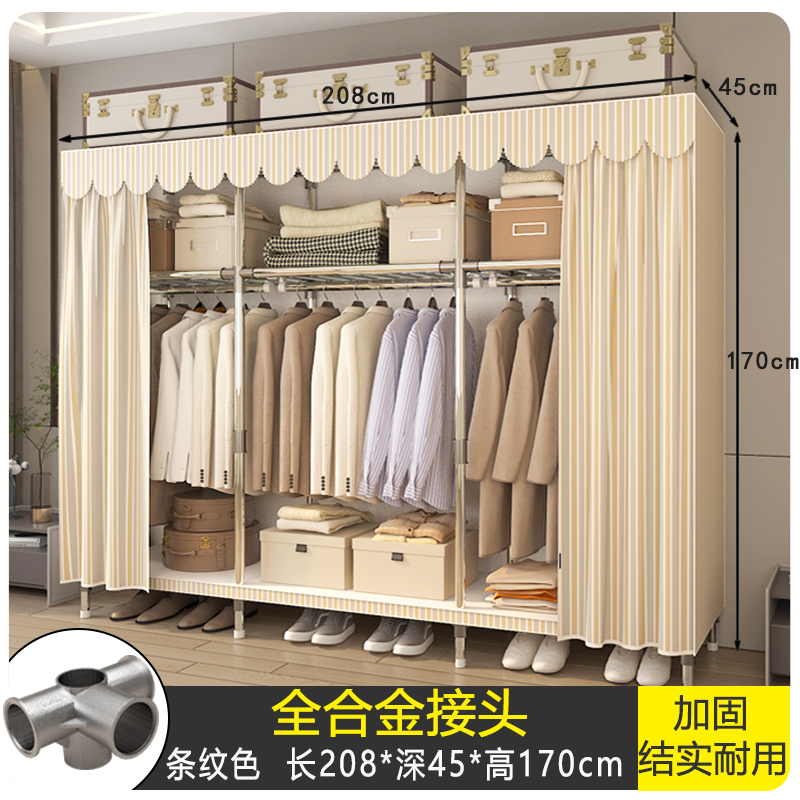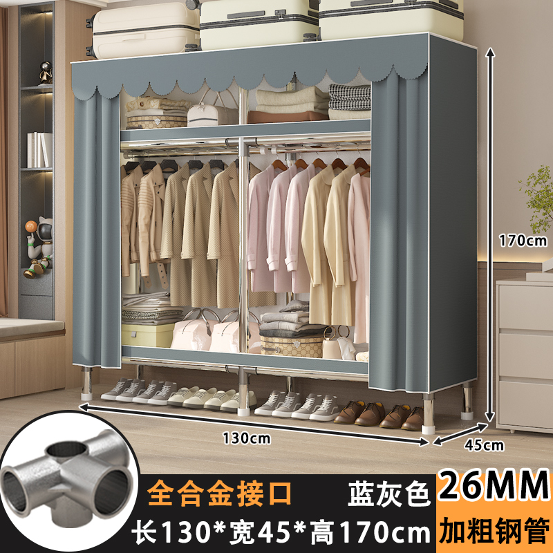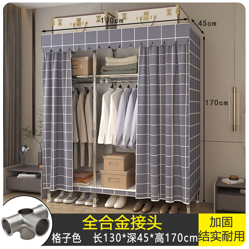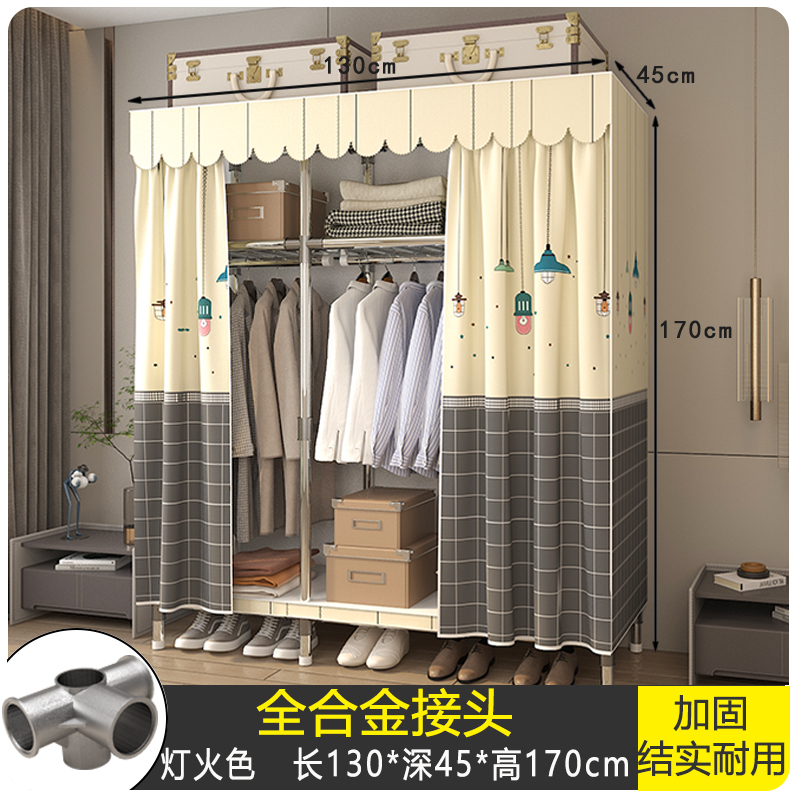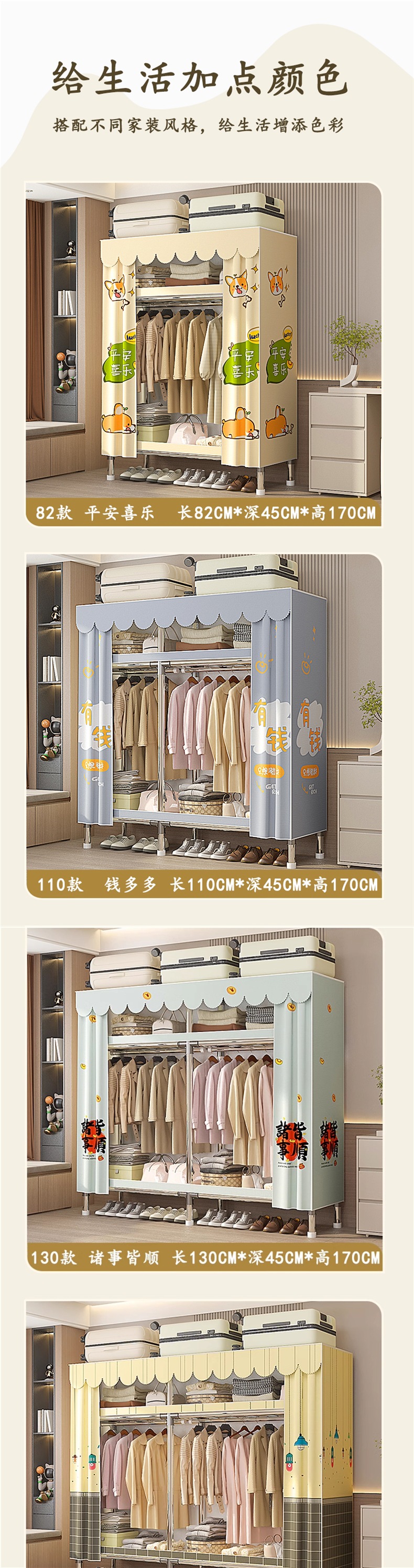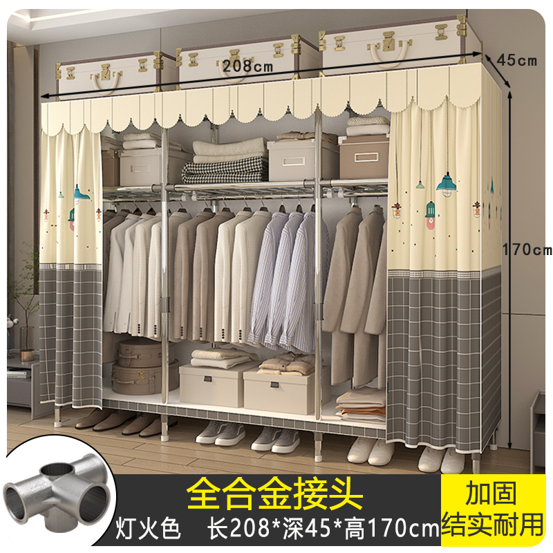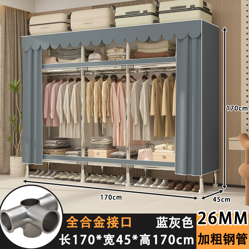 간단한 옷장 강철 파이프 천 옷장 두껍고 강화된 침실 조립 가정용 옷장 임대실 옷 보관 선반