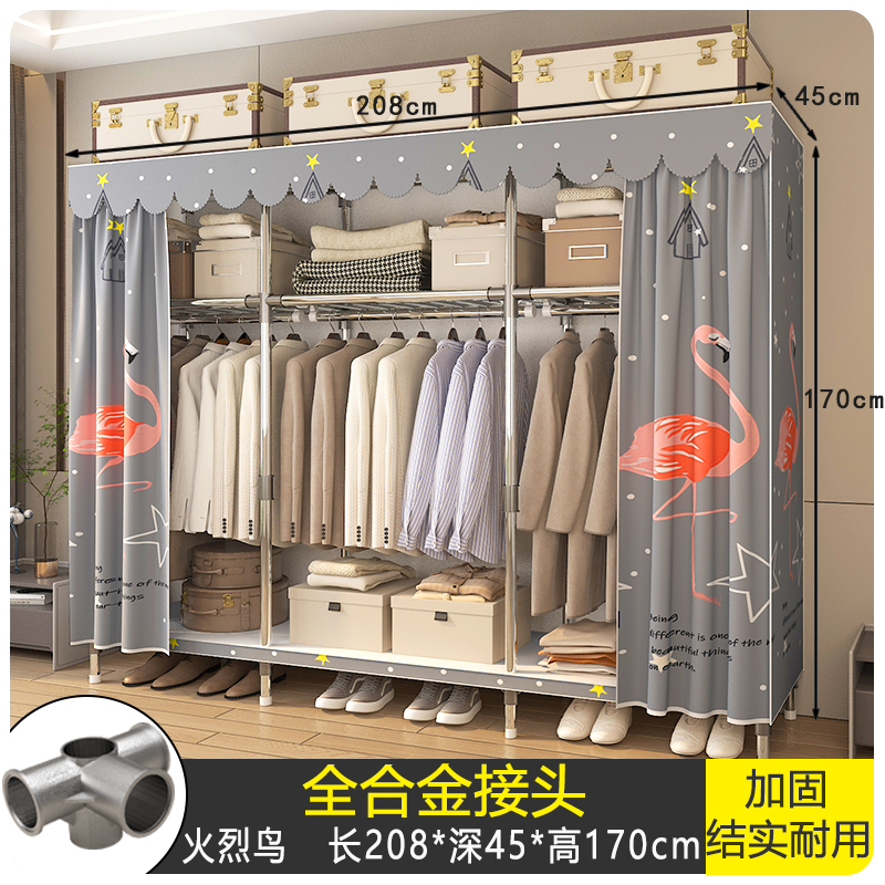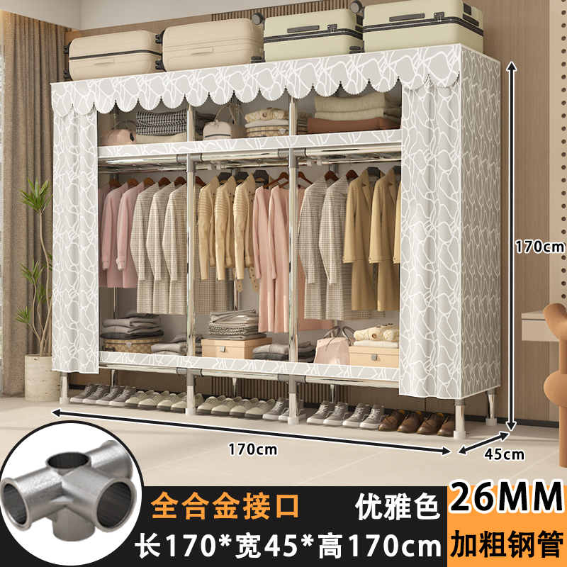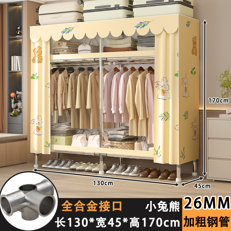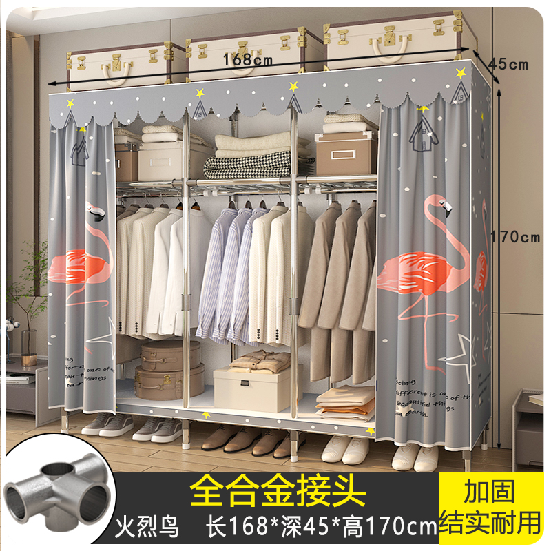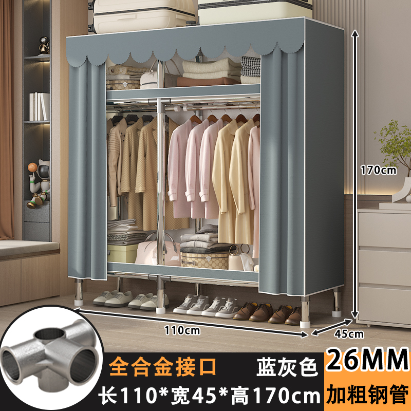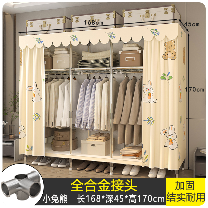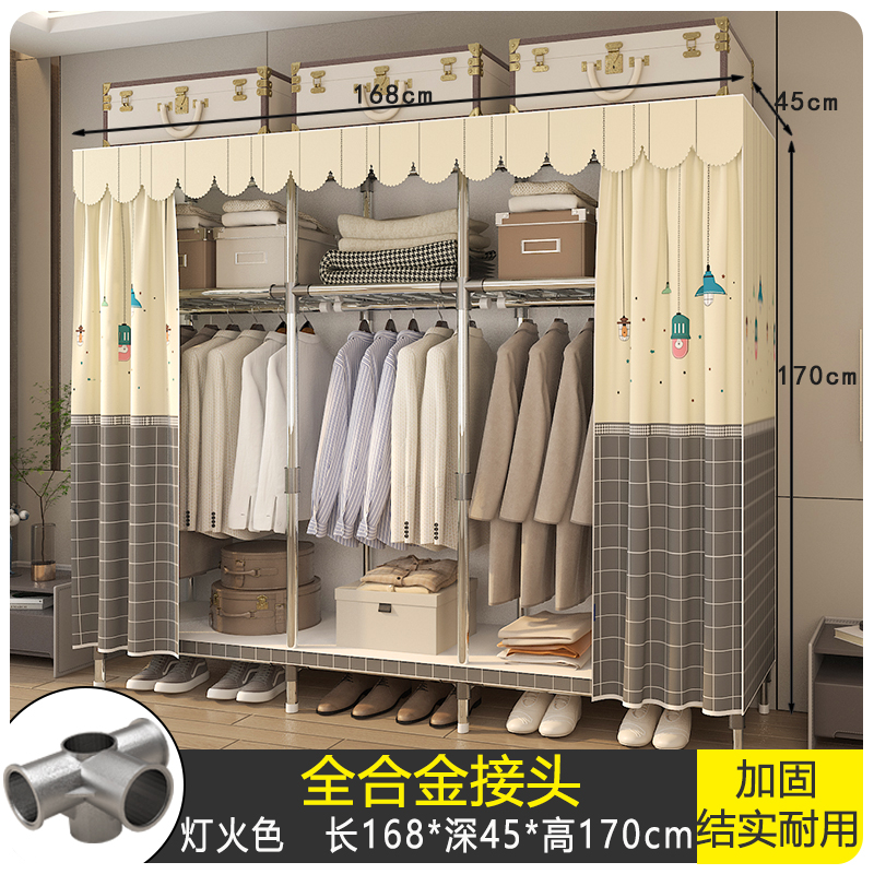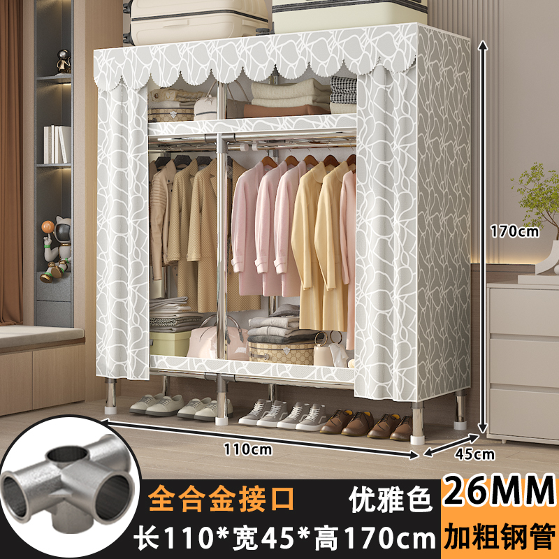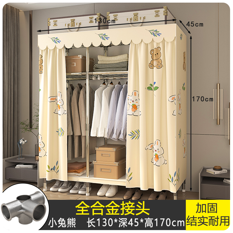 간단한 옷장 강철 파이프 천 옷장 두껍고 강화된 침실 조립 가정용 옷장 임대실 옷 보관 선반