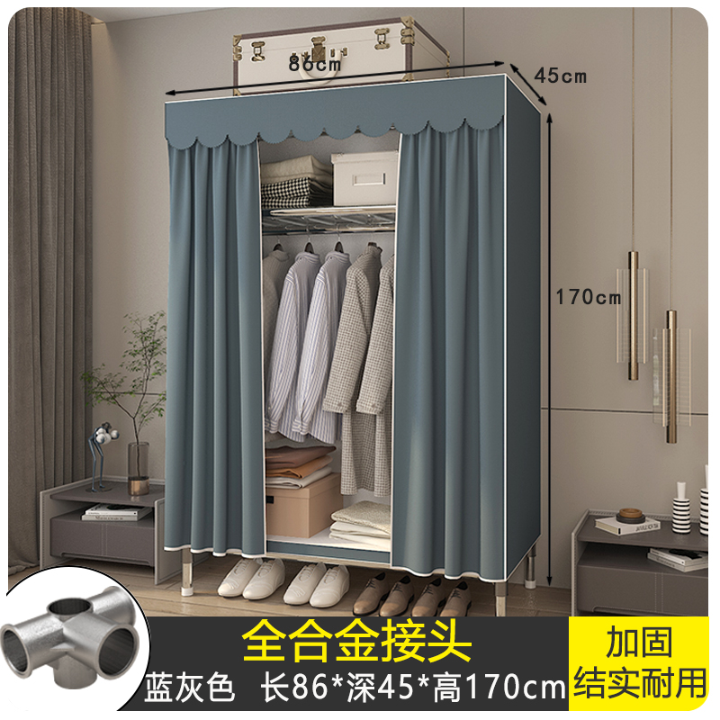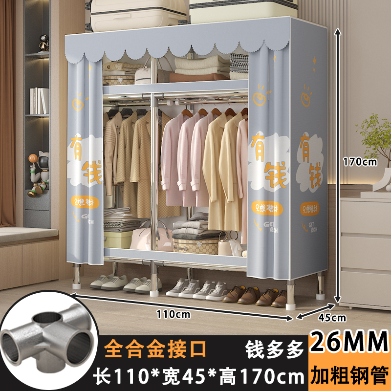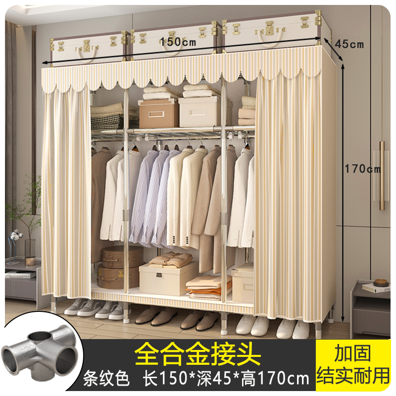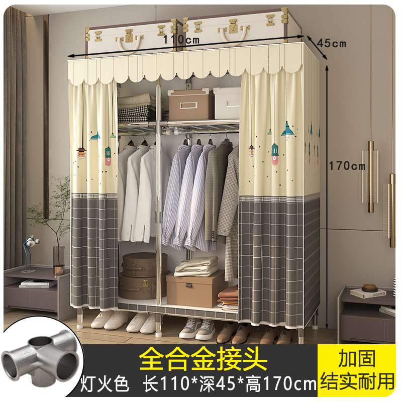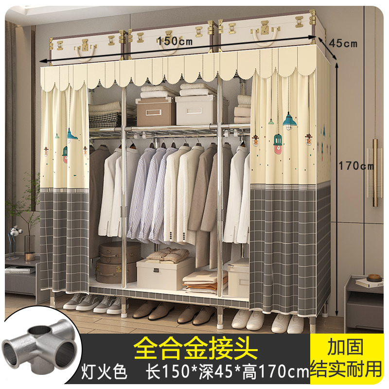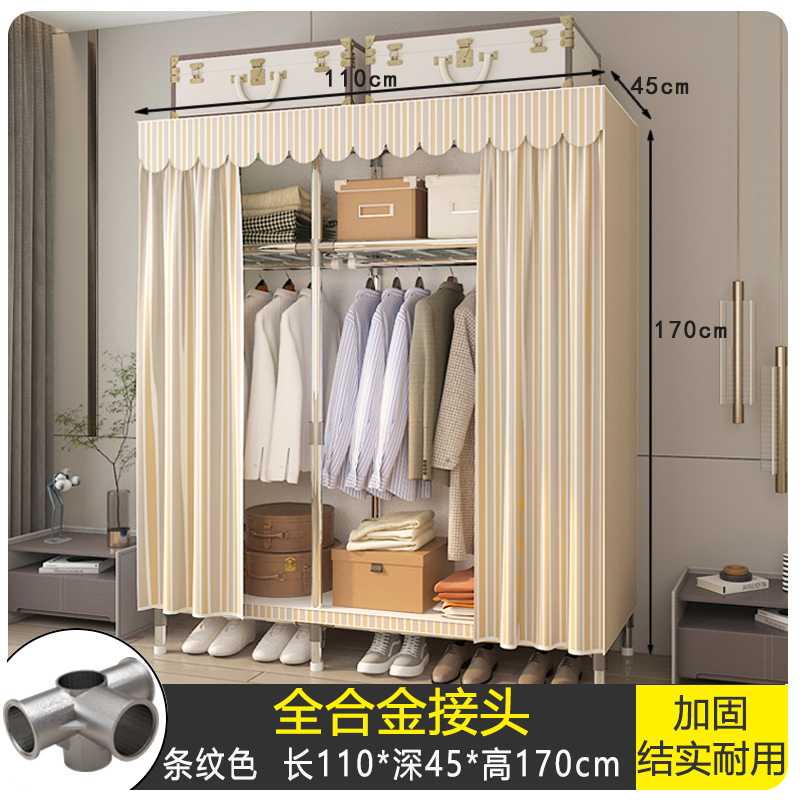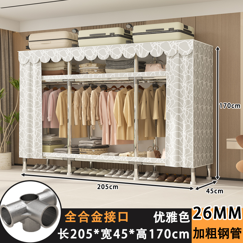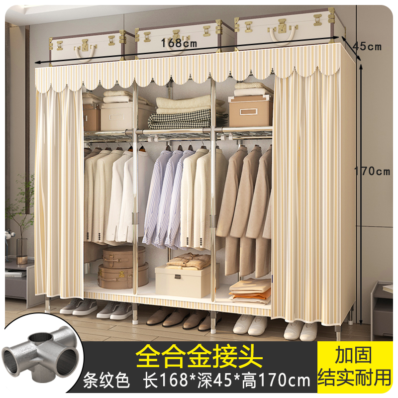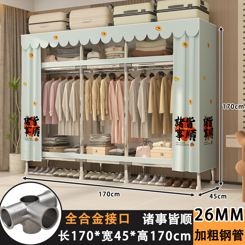 간단한 옷장 강철 파이프 천 옷장 두껍고 강화된 침실 조립 가정용 옷장 임대실 옷 보관 선반