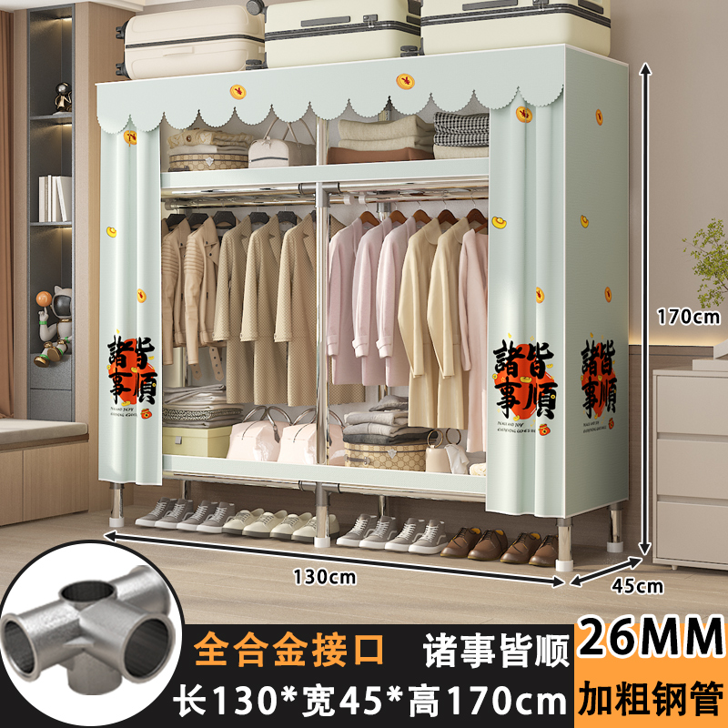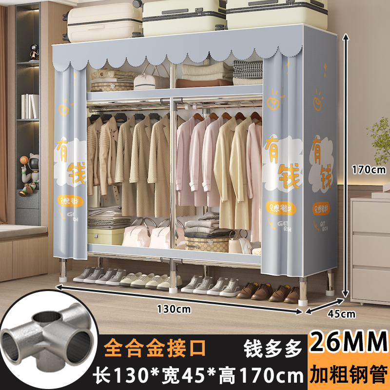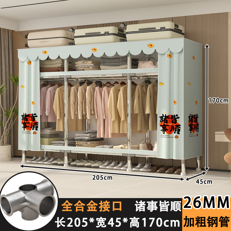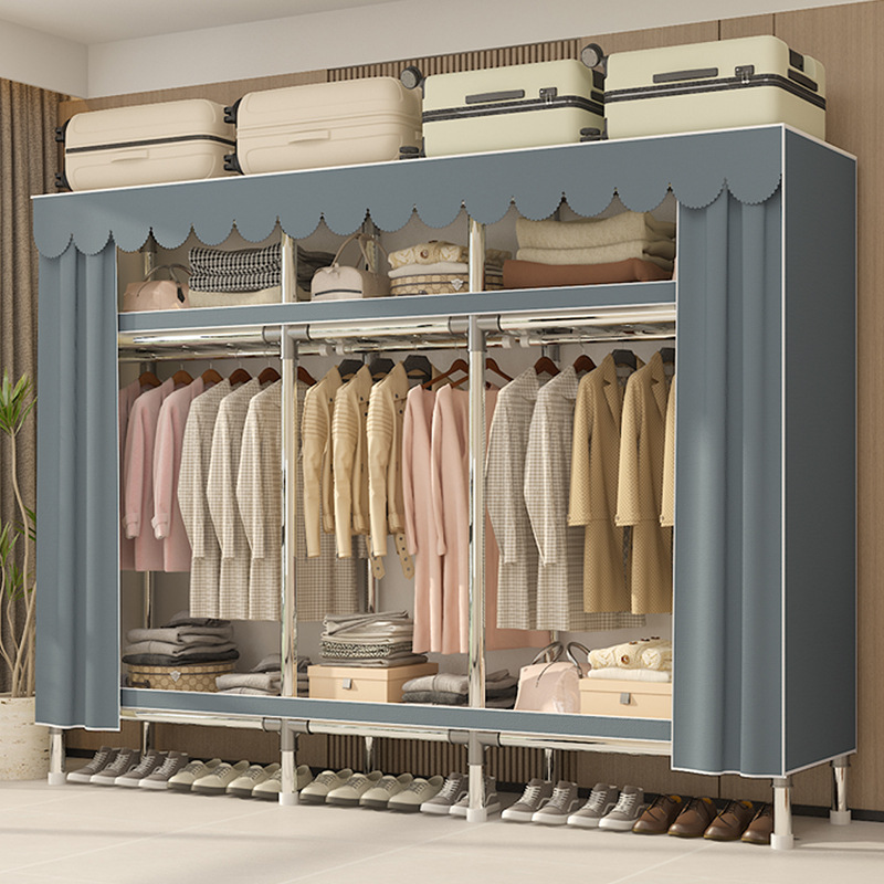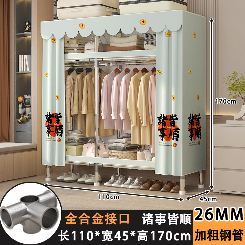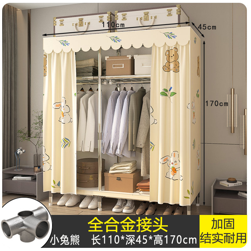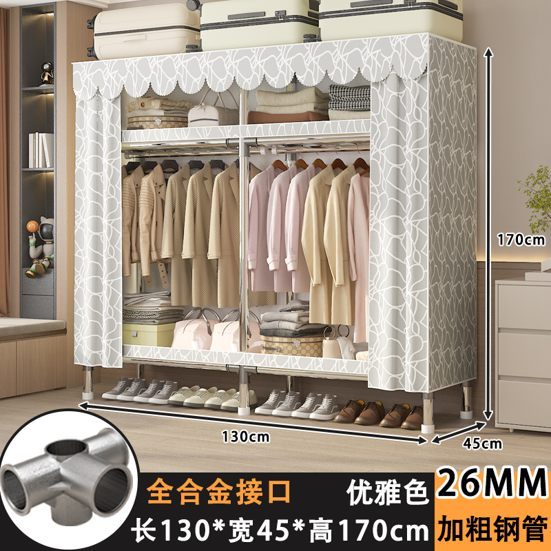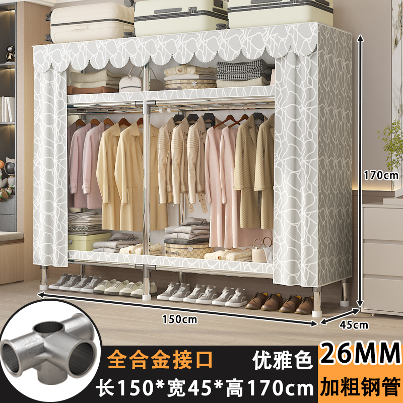 간단한 옷장 강철 파이프 천 옷장 두껍고 강화된 침실 조립 가정용 옷장 임대실 옷 보관 선반