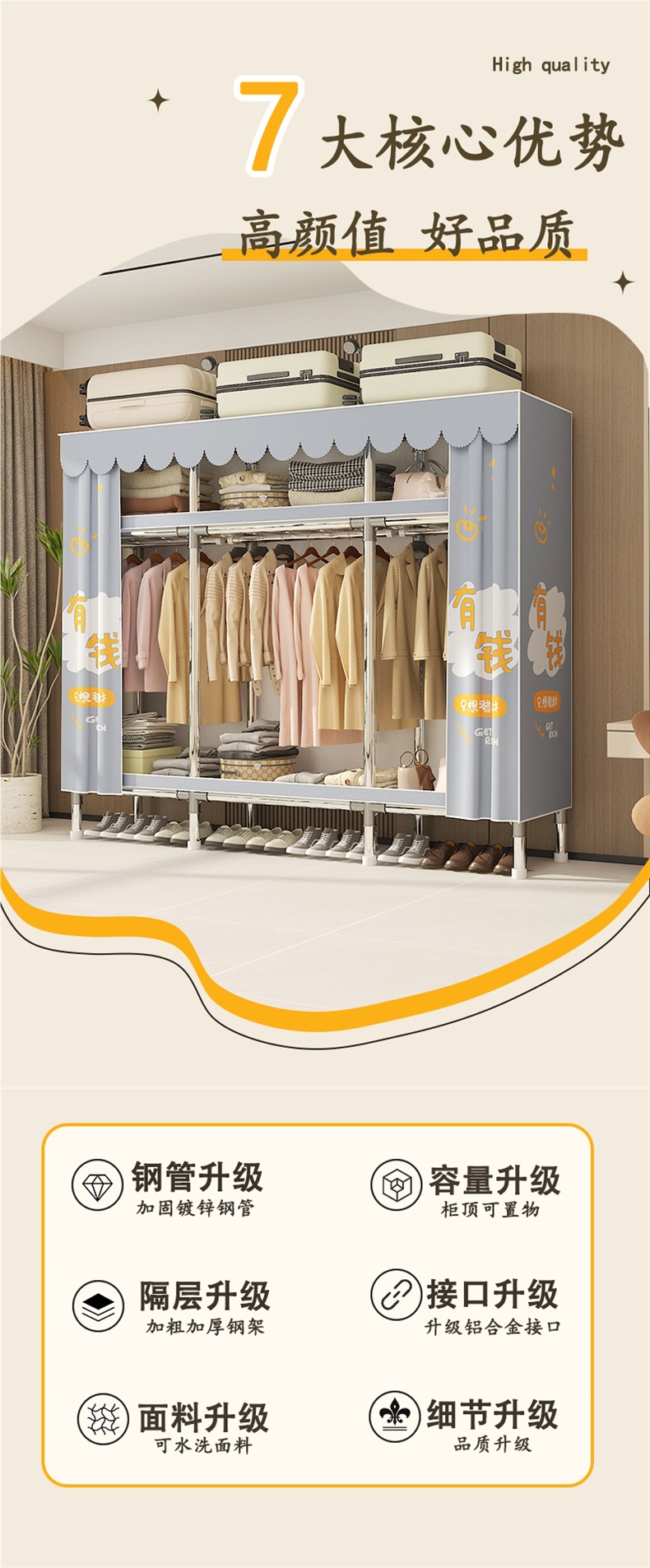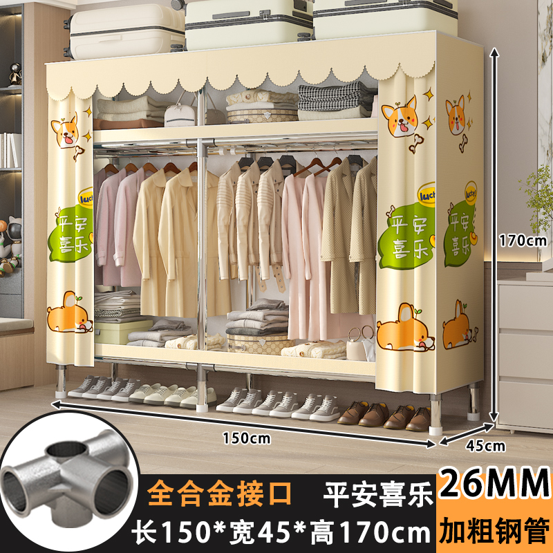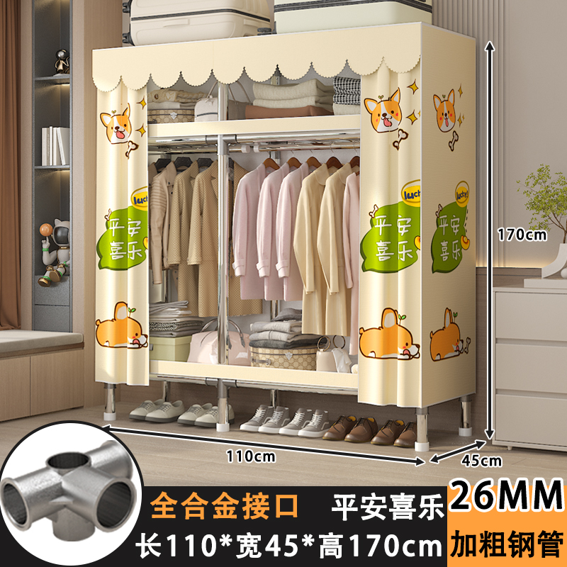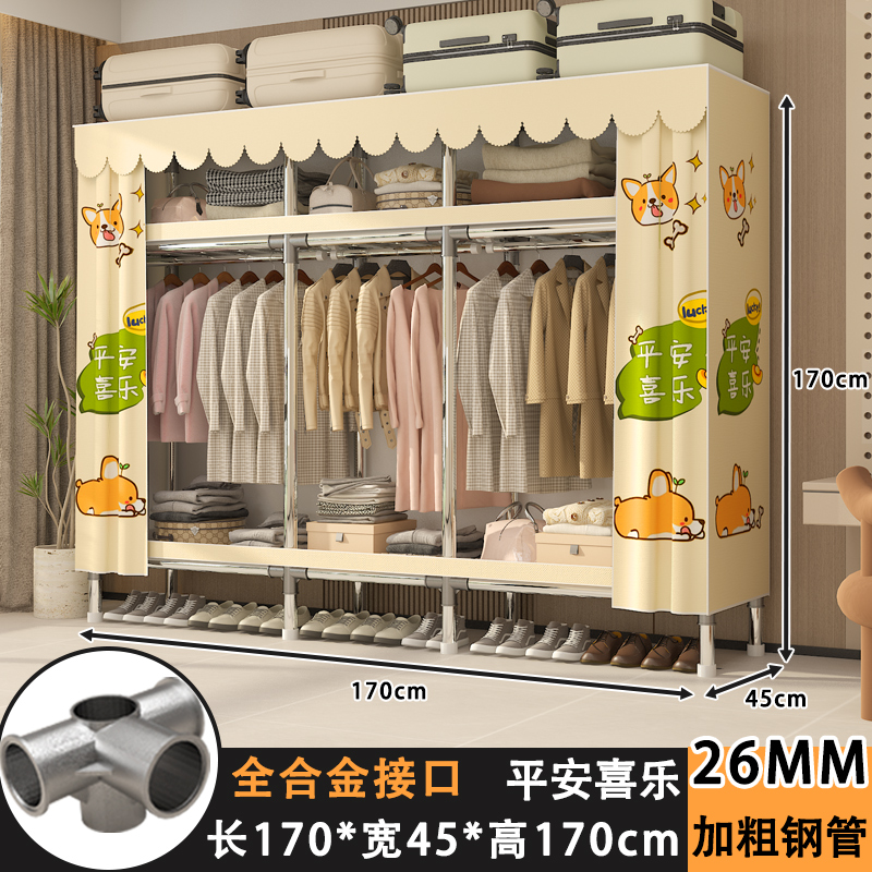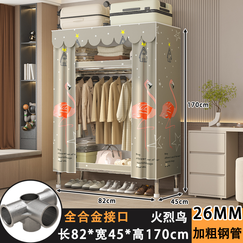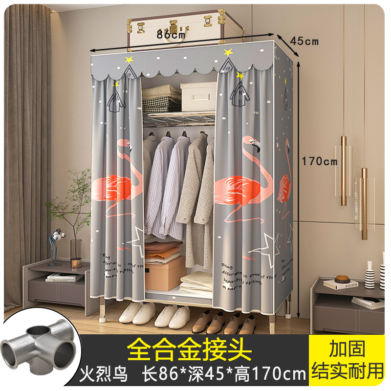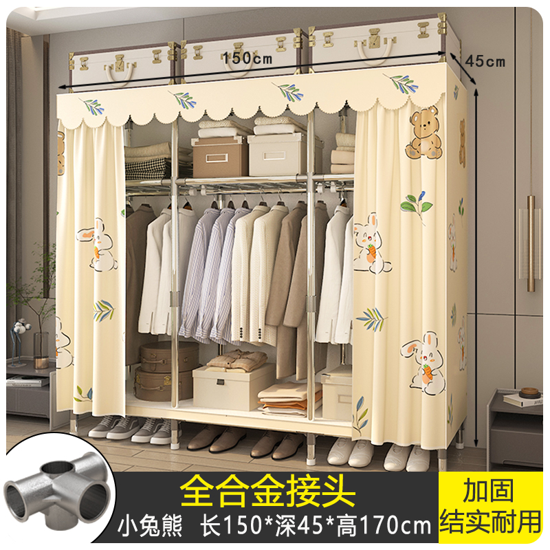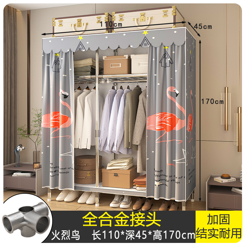 간단한 옷장 강철 파이프 천 옷장 두껍고 강화된 침실 조립 가정용 옷장 임대실 옷 보관 선반