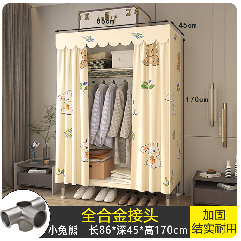 간단한 옷장 강철 파이프 천 옷장 두껍고 강화된 침실 조립 가정용 옷장 임대실 옷 보관 선반스토어 가기