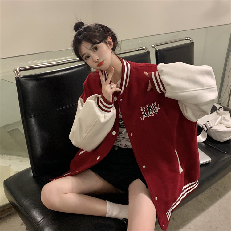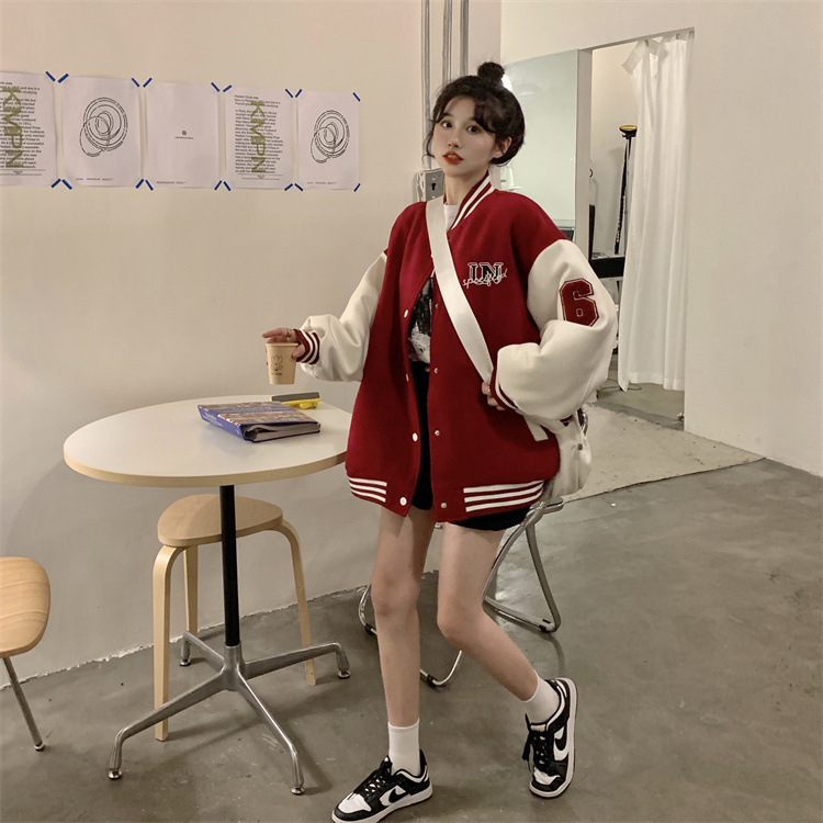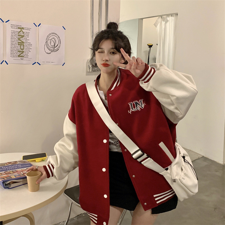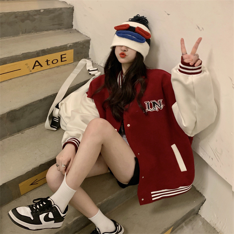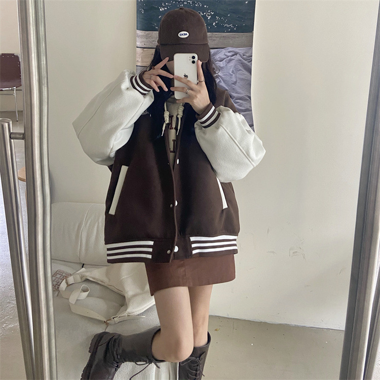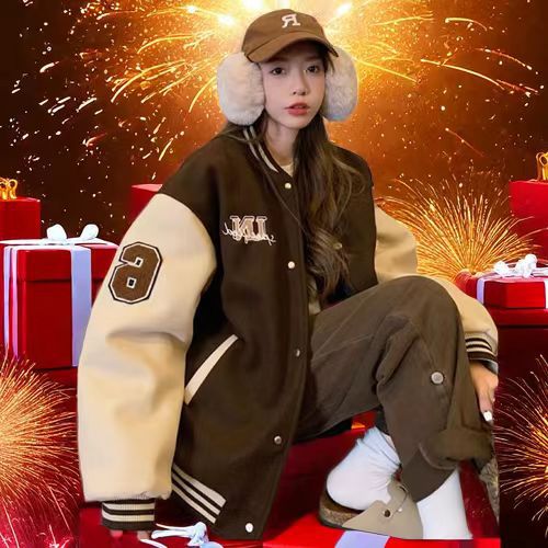 여성을위한 미국 복고풍 숲 스타일 야구 유니폼 2024 가을, 겨울 대학 스타일 두꺼운 재킷 느슨한 재킷 다목적스토어 가기