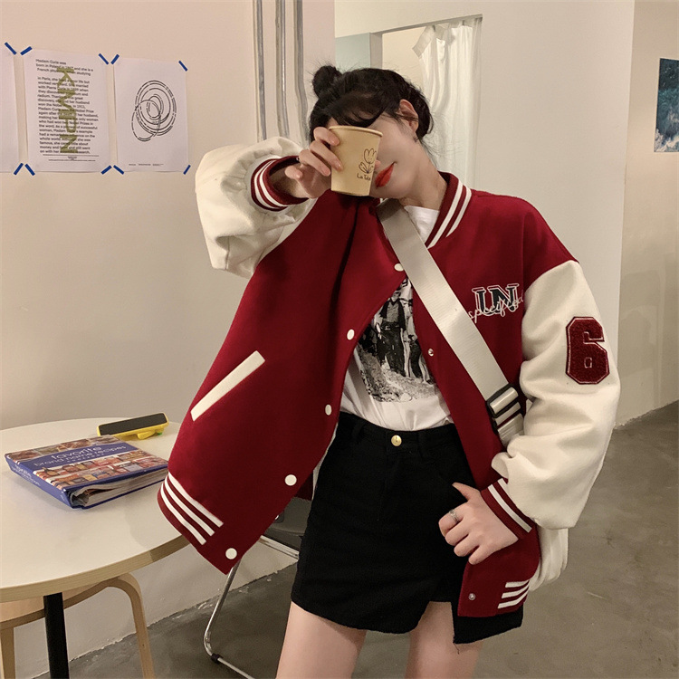 여성을위한 미국 복고풍 숲 스타일 야구 유니폼 2024 가을, 겨울 대학 스타일 두꺼운 재킷 느슨한 재킷 다목적