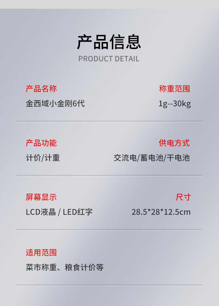 • 일반 재질 30kg 10g 빨간색 문자 단면 디스플레이