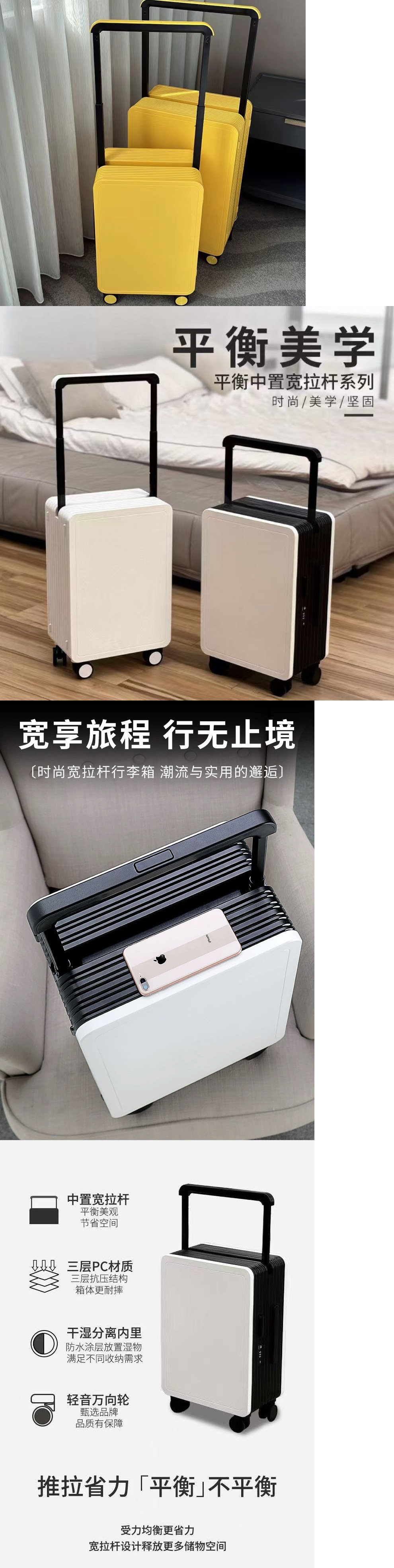 여성용 중앙 장착형 와이드 트롤리 가방, 남성용 새로운 탑승 코드 박스 가방, 대용량 트롤리 가방스토어 가기
