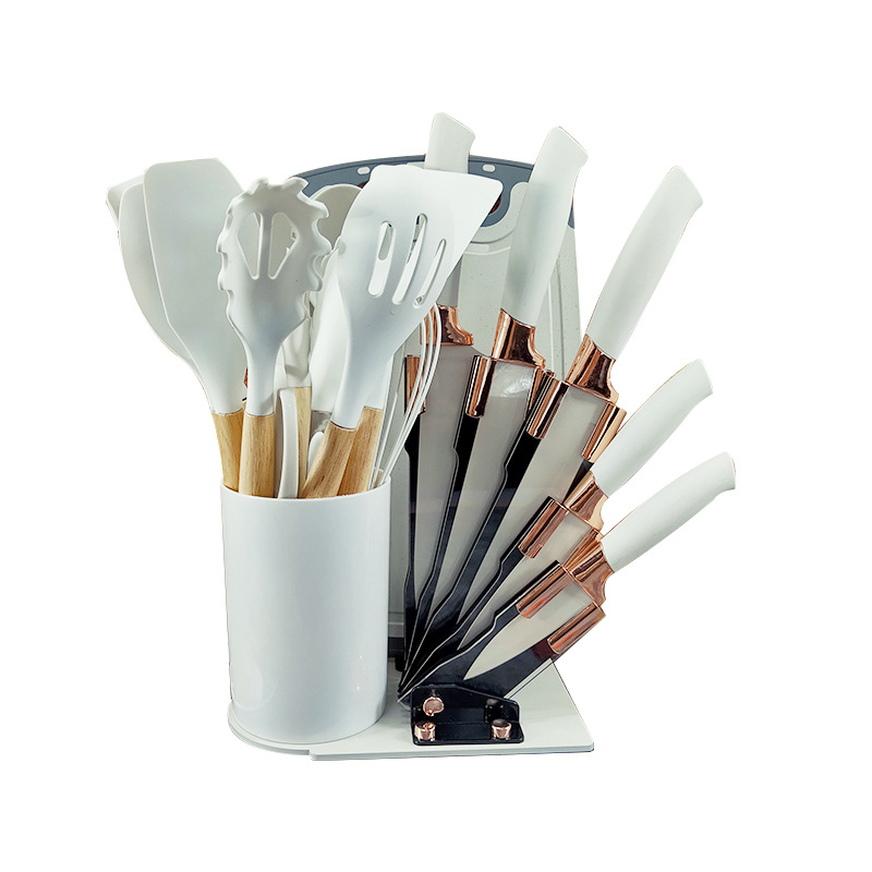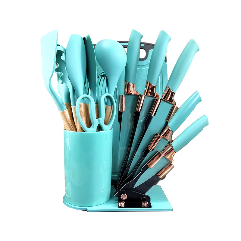 실리콘 주방용품 칼 세트 19종 세트 요리용 스푼 주걱 칼 보관통 나무 손잡이 주방용품 12종 세트 주방 도구
