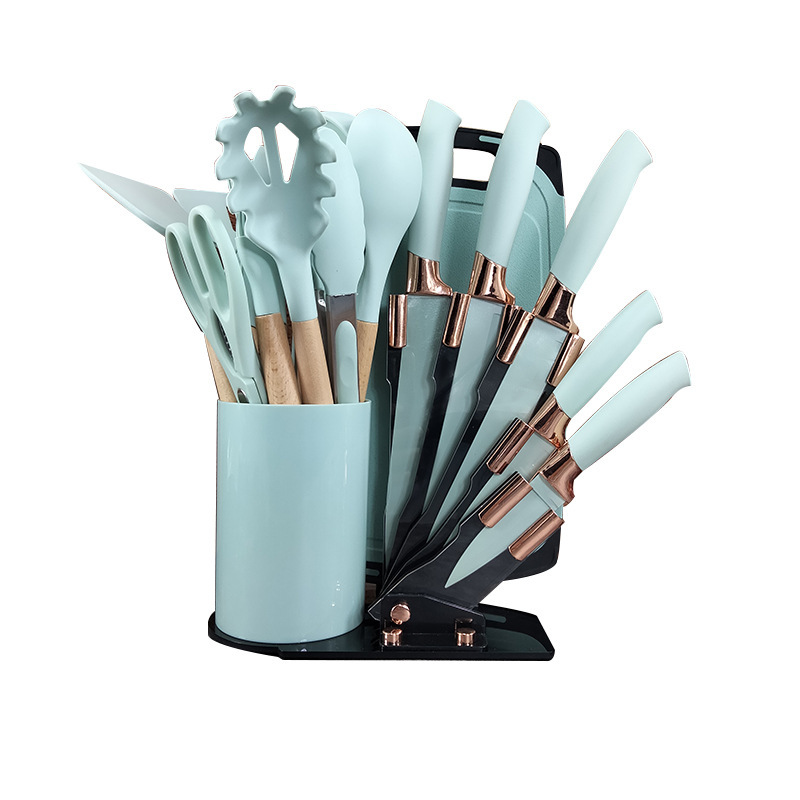 • 칼과 주방용품 19종 세트(짙은 녹색)