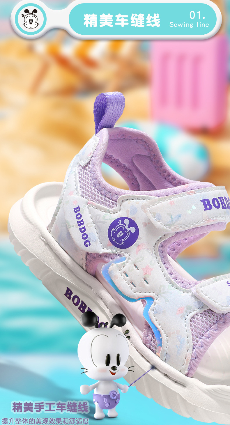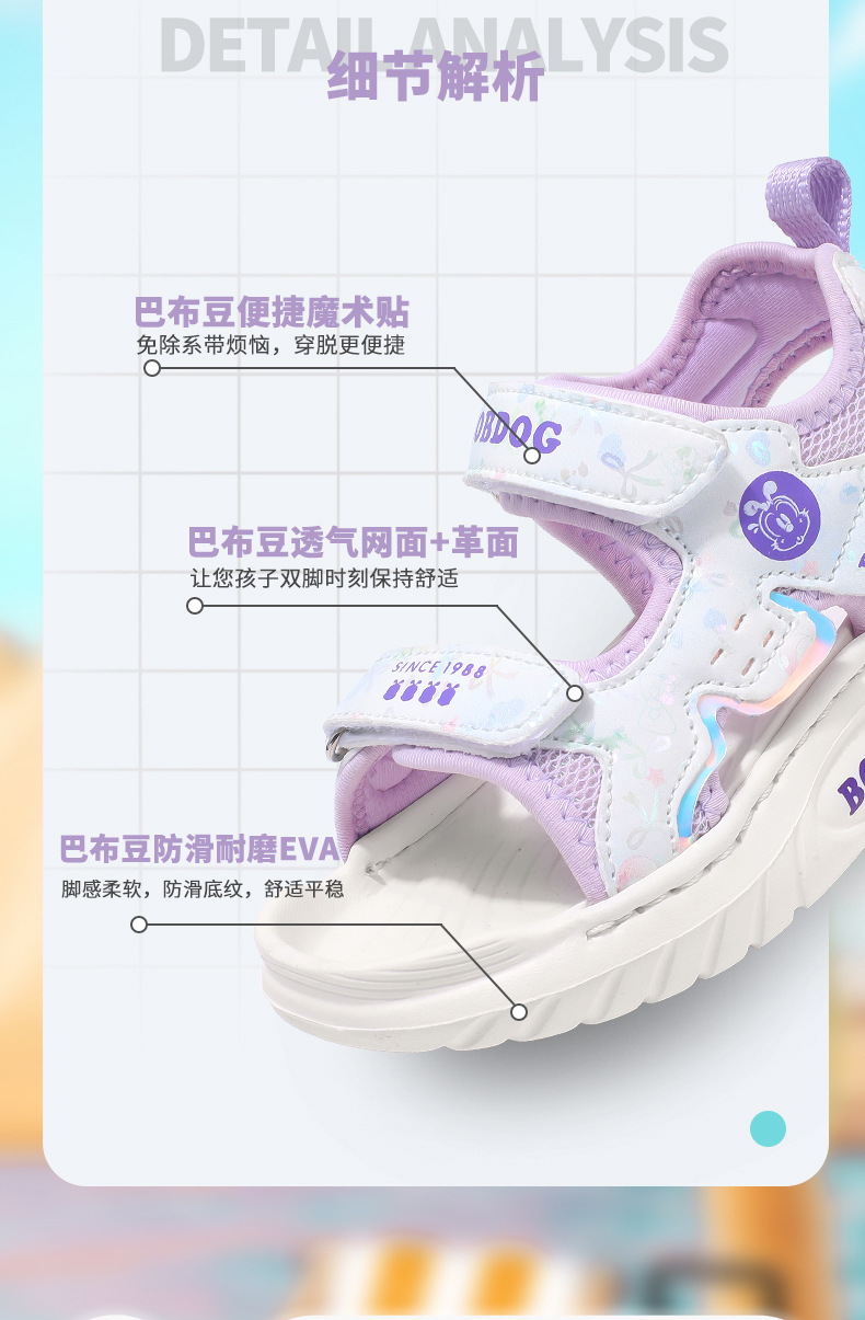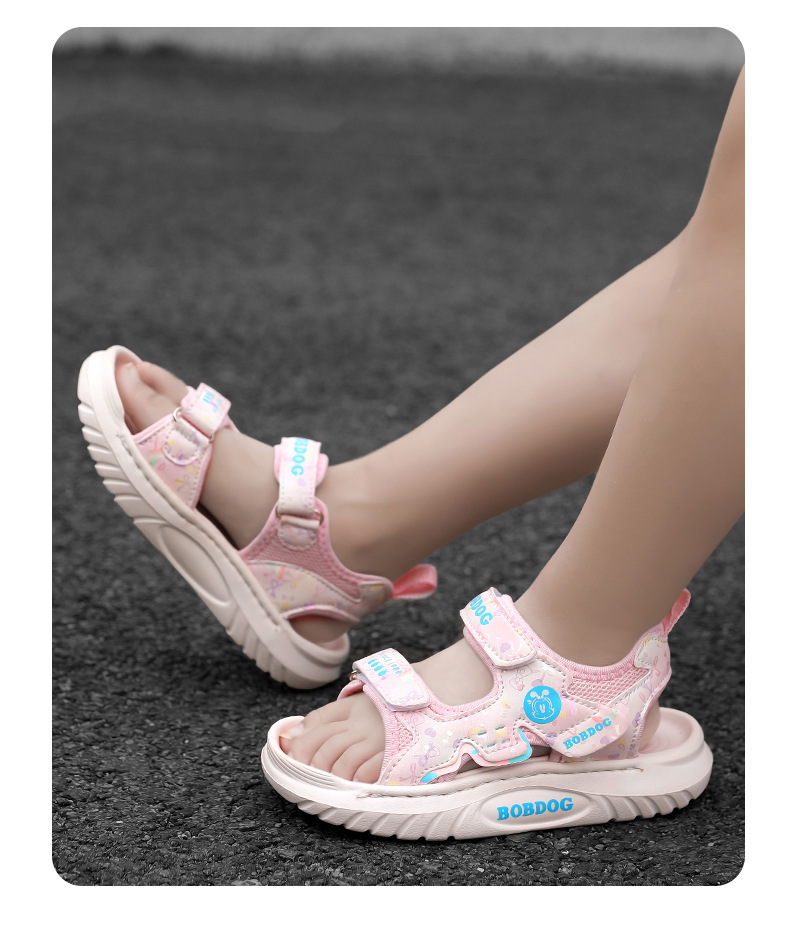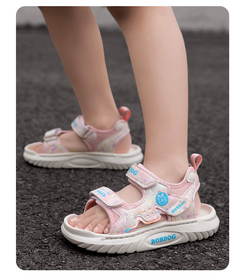 Babudou 샌들 2025 새로운 여름 오픈 발가락 통기성 어린이 샌들 중형 및 대형 어린이 부드러운 밑창 미끄럼 방지 해변 신발스토어 가기