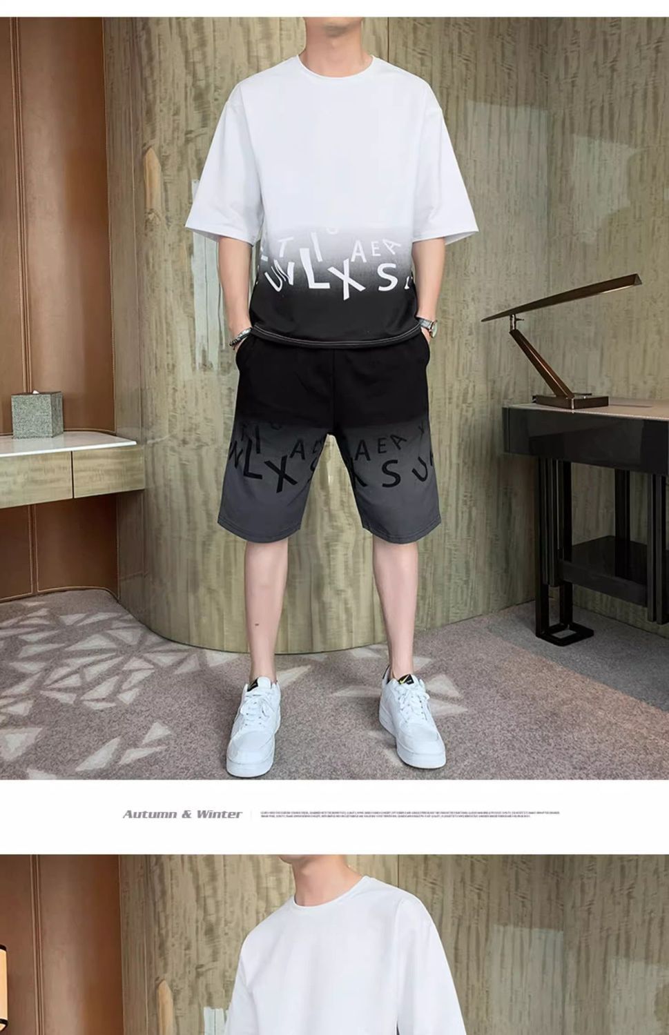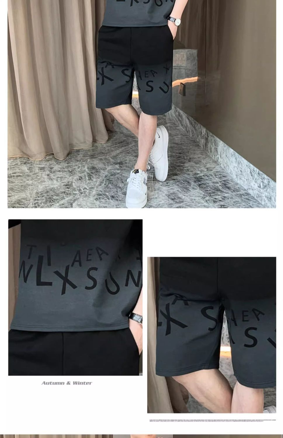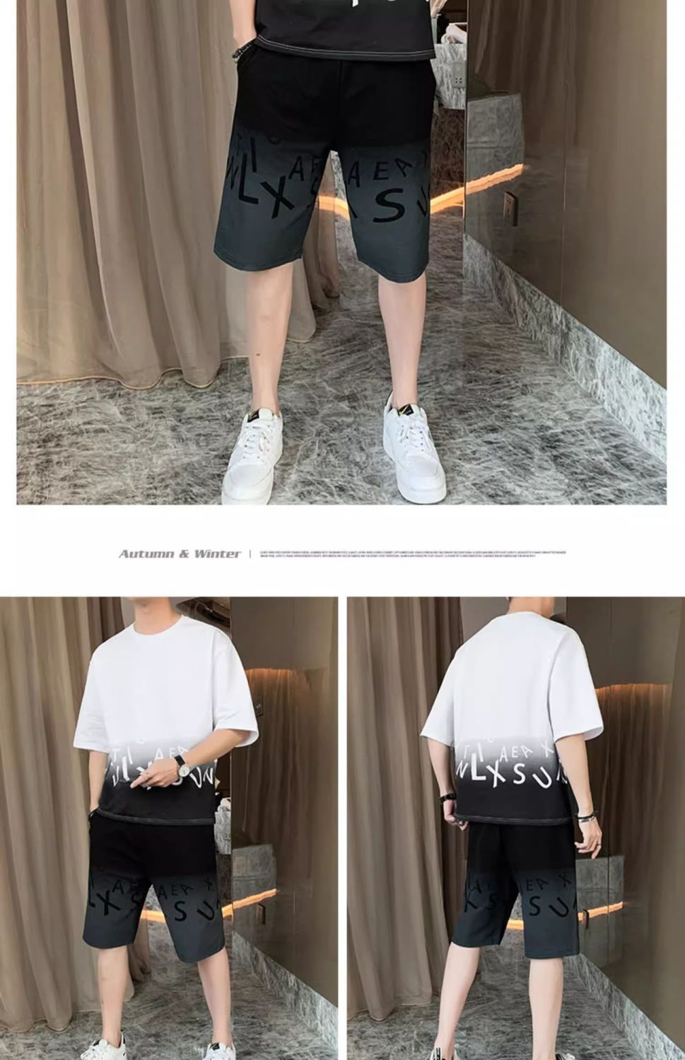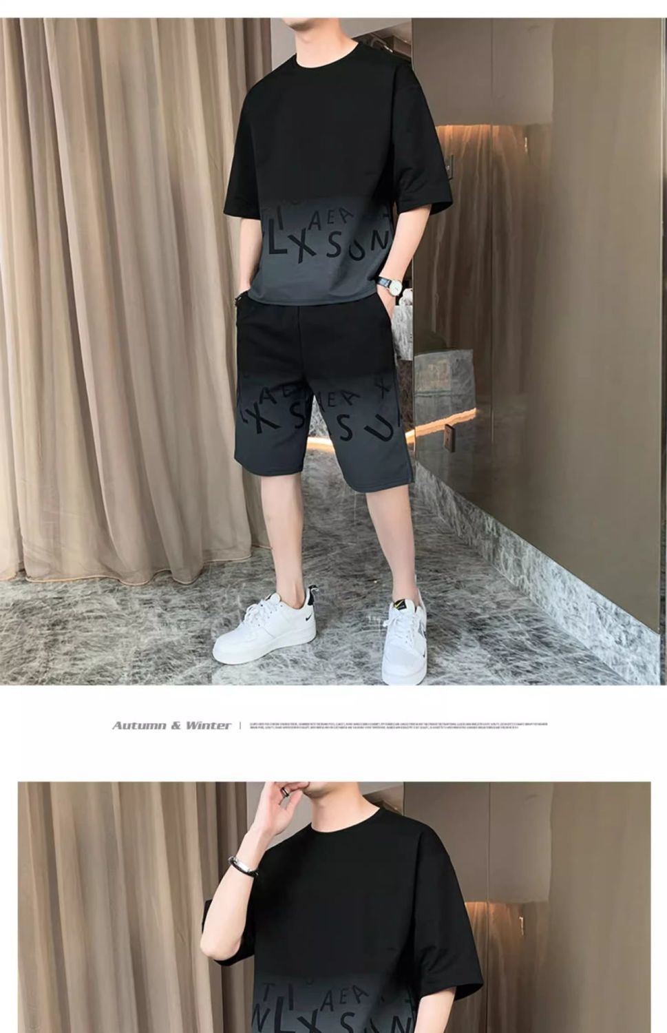 남성용 여름 아이스 실크 얇은 속건성 반팔 티셔츠 반바지 캐주얼 운동복 잘생긴 의상 세트스토어 가기