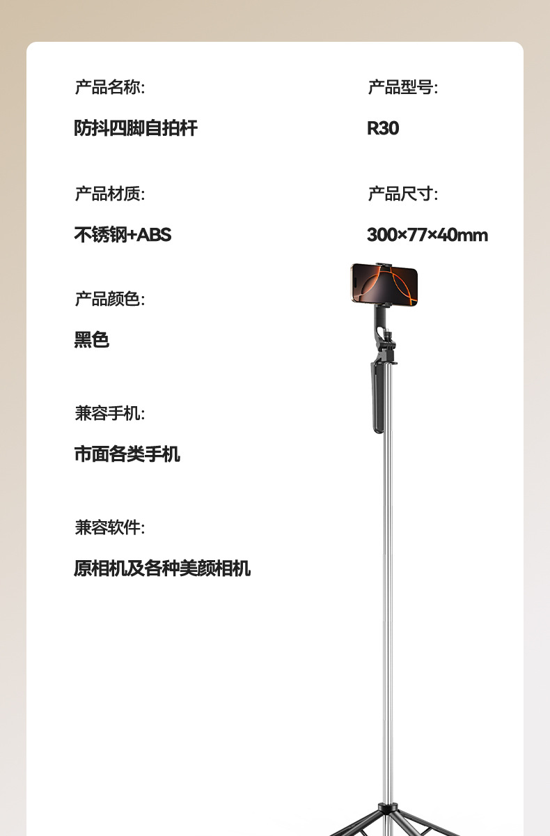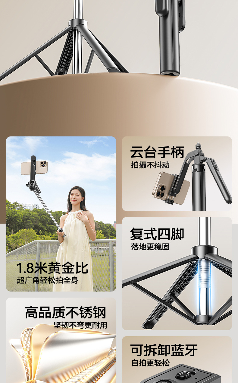 새로운 R30 셀카봉 일체형 4각 블루투스 휴대폰 라이브 방송 스탠드 1.8m 인터넷 연예인 휴대용 셀카봉