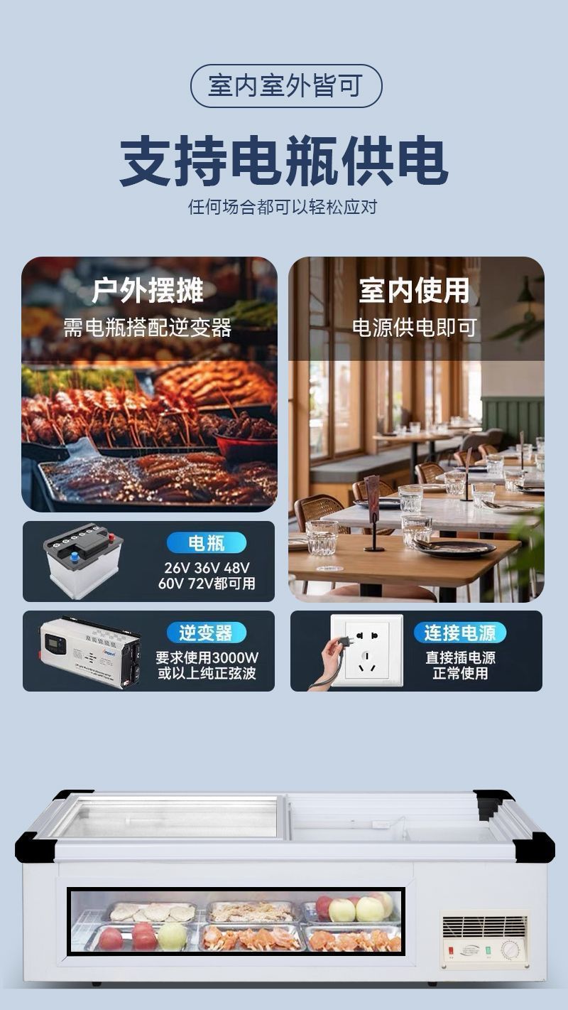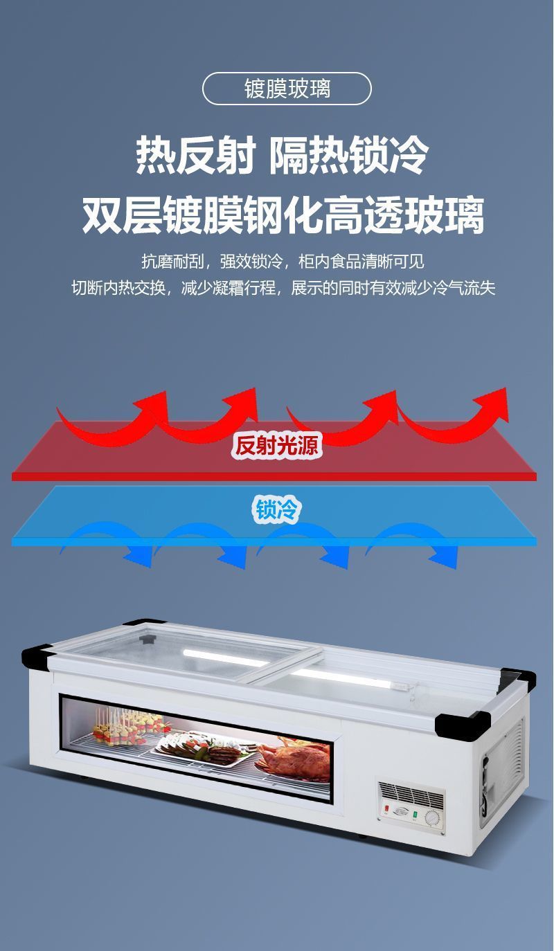 데스크탑 냉장 디스플레이 캐비닛, 삼륜차, 상업용 냉동 꼬치 튀김 냉동고, 수평 바베큐, 소형 모바일
