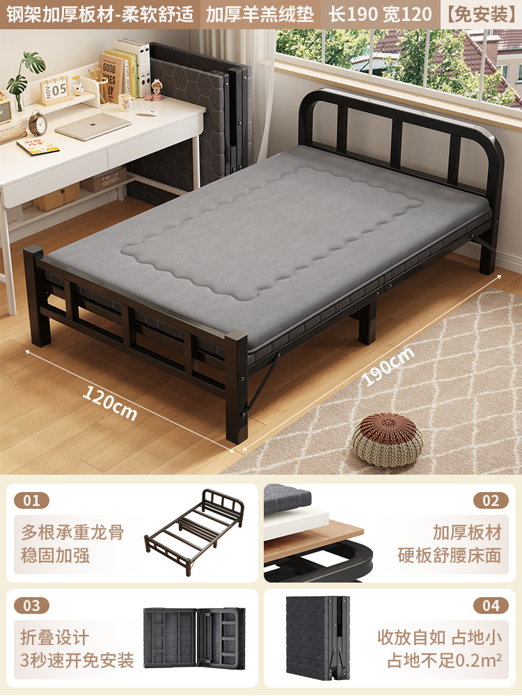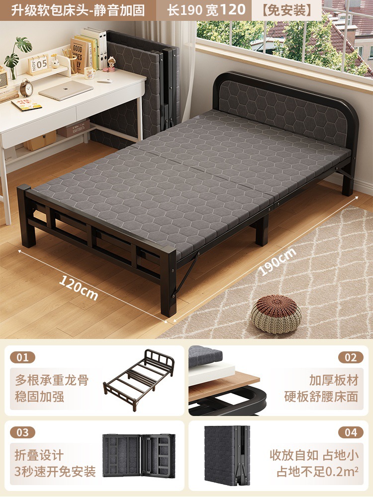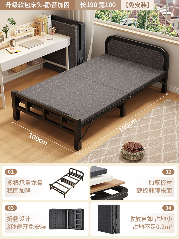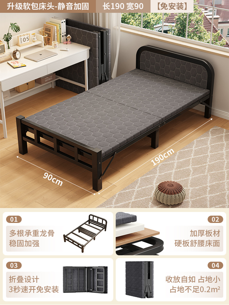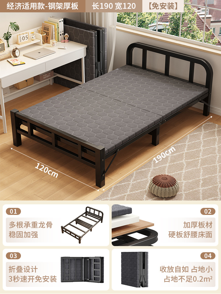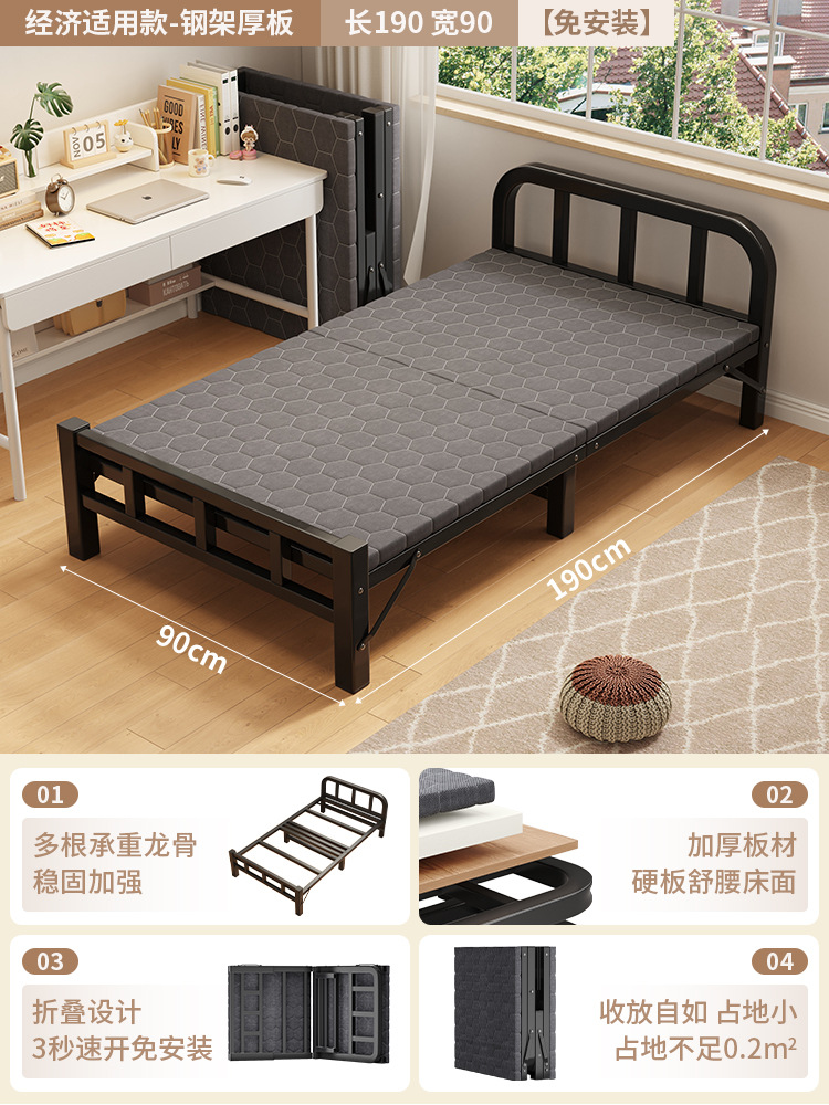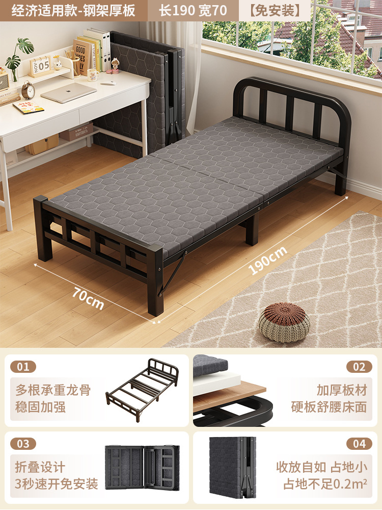 접이식 침대 싱글 침대 가정용 성인 임대 주택 간이 침대 사무실 점심 시간 침대 기숙사 편리한 하드 보드 철제 침대스토어 가기