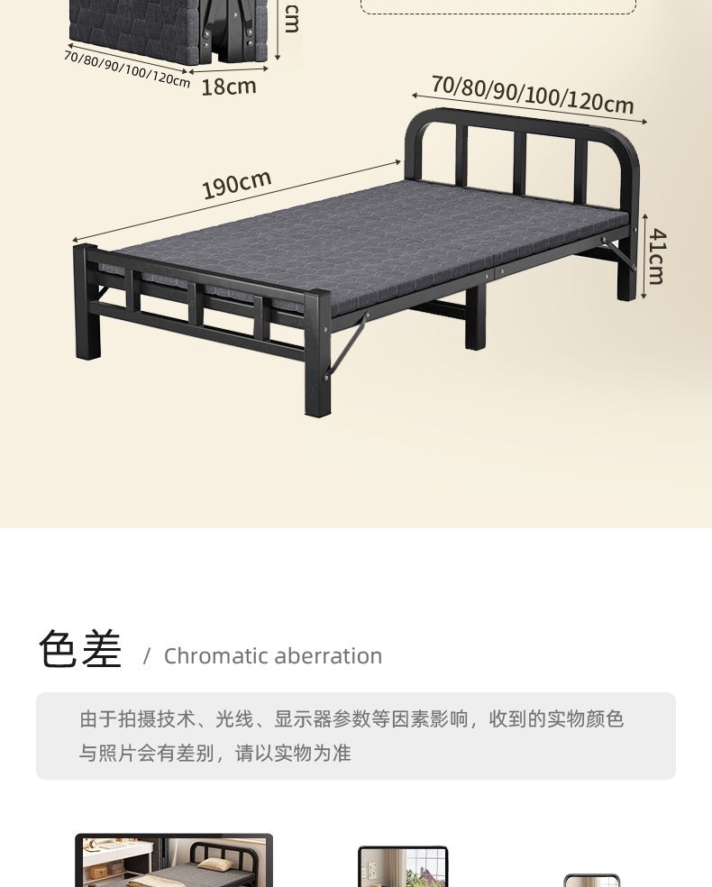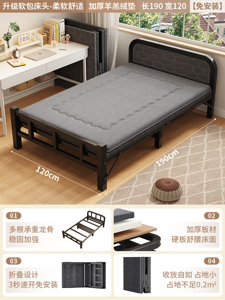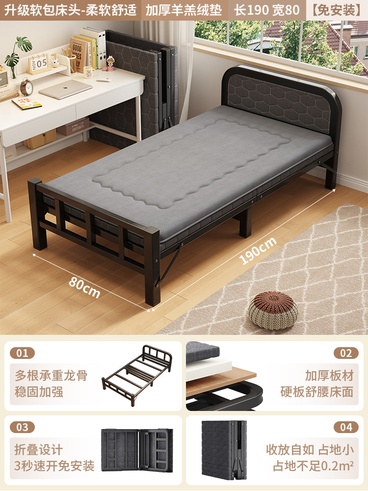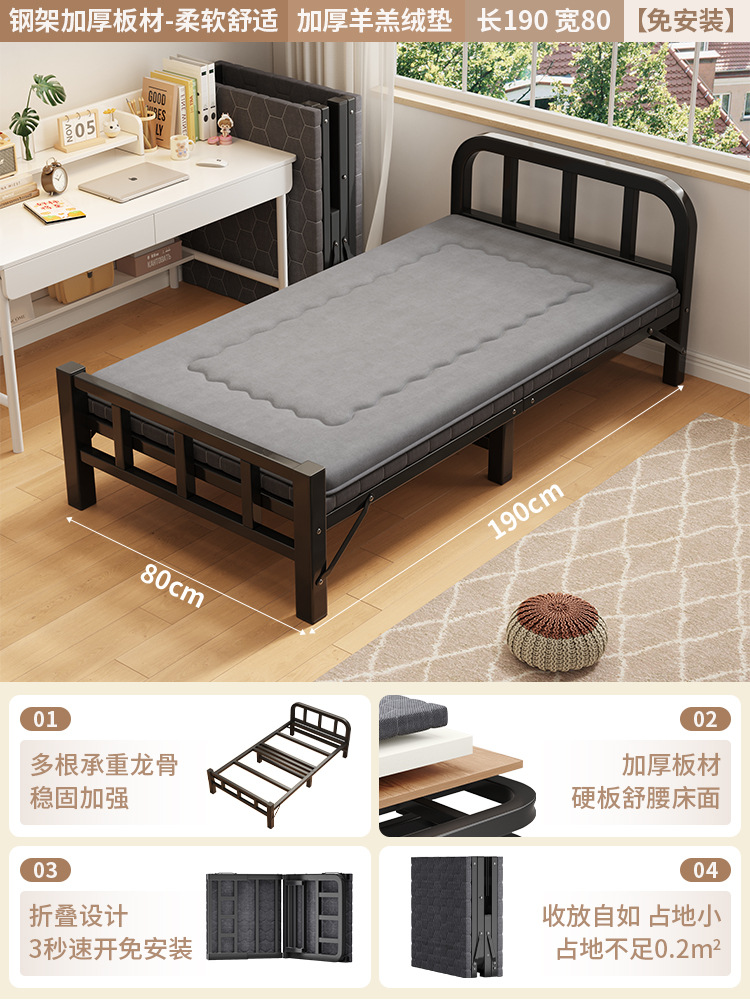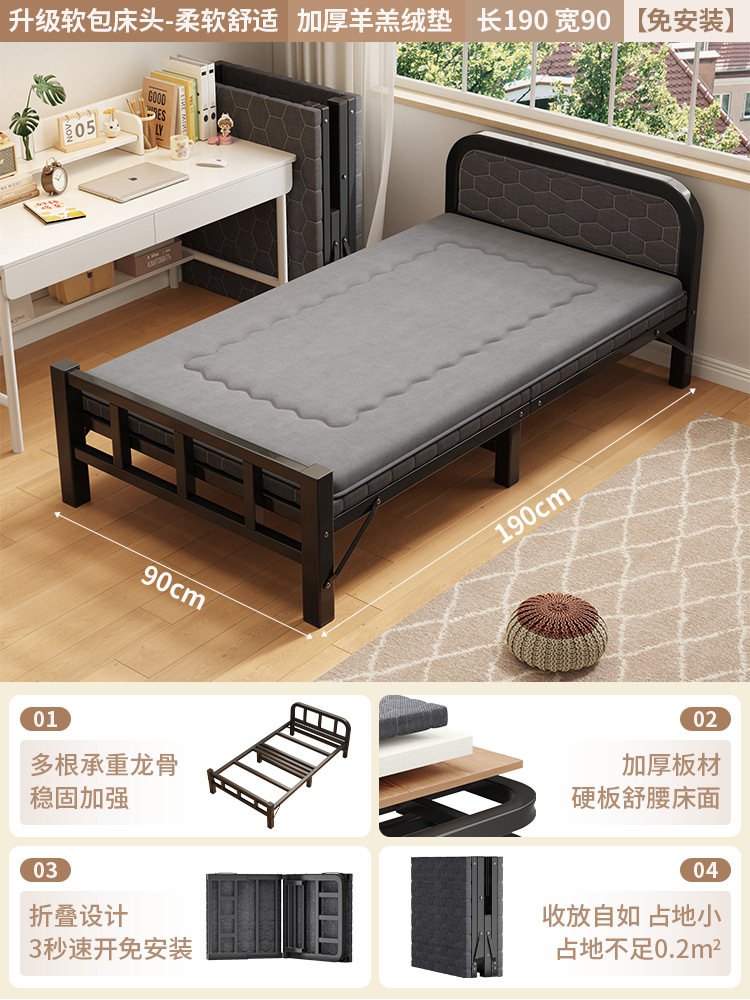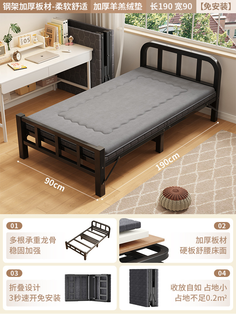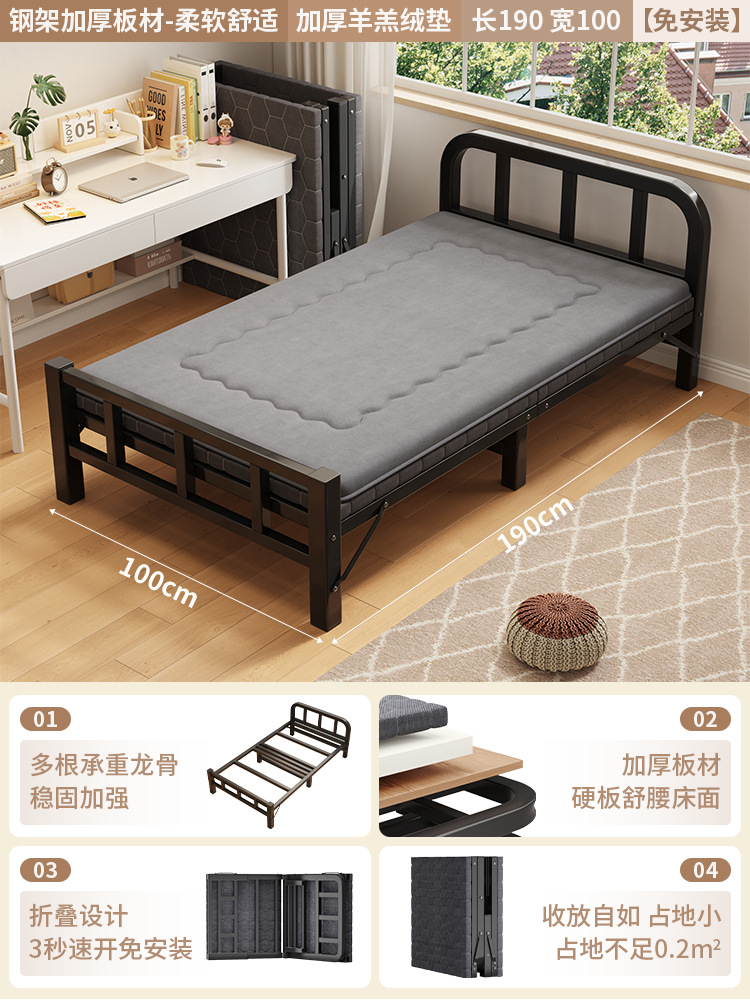 접이식 침대 싱글 침대 가정용 성인 임대 주택 간이 침대 사무실 점심 시간 침대 기숙사 편리한 하드 보드 철제 침대스토어 가기
