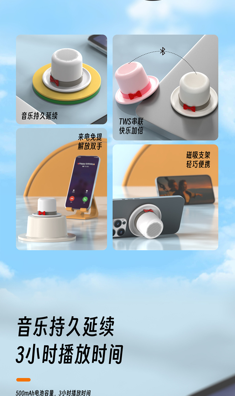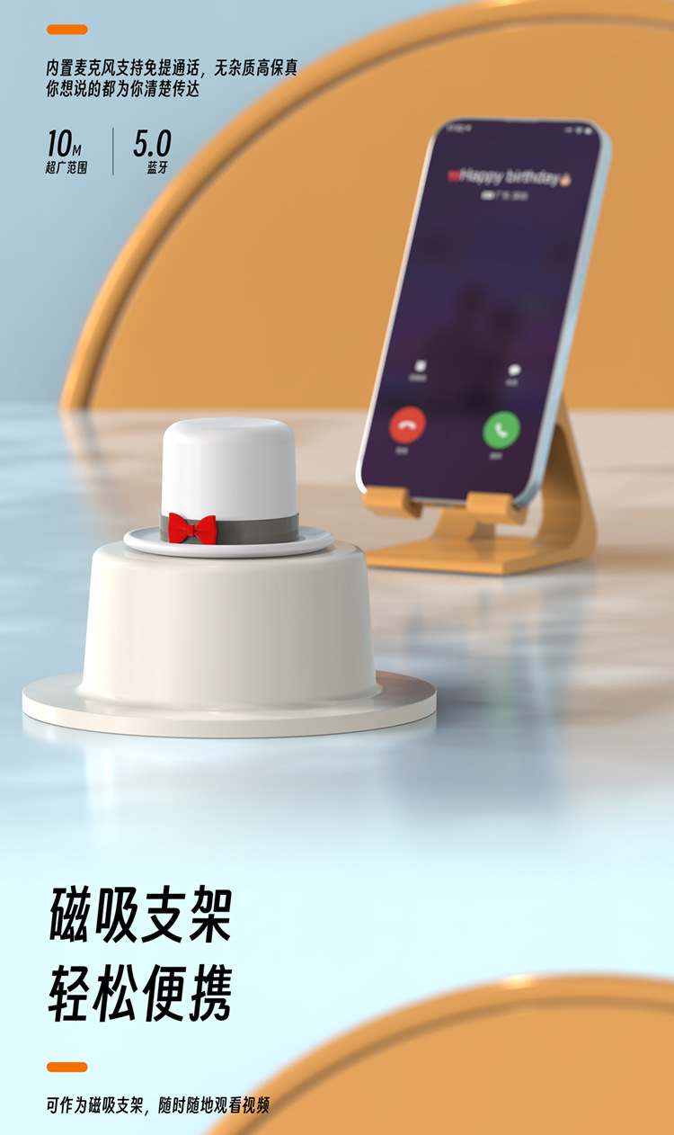 새로운 매직 캡 자기 블루투스 스피커, 작고 휴대 가능하며 TWS로 연결 가능한 소형 스피커, 휴대폰 홀더, 투인원스토어 가기