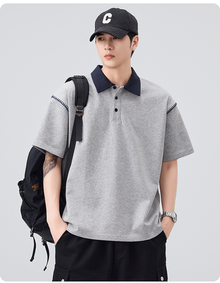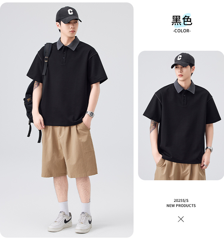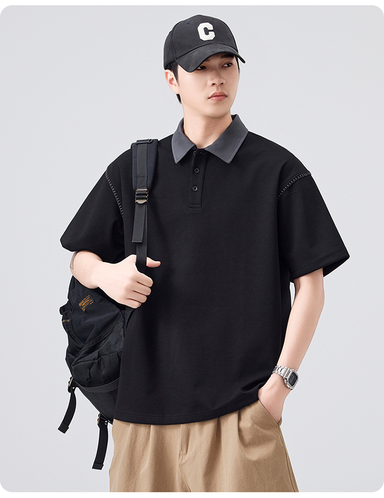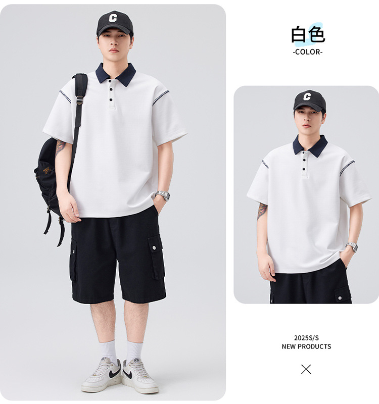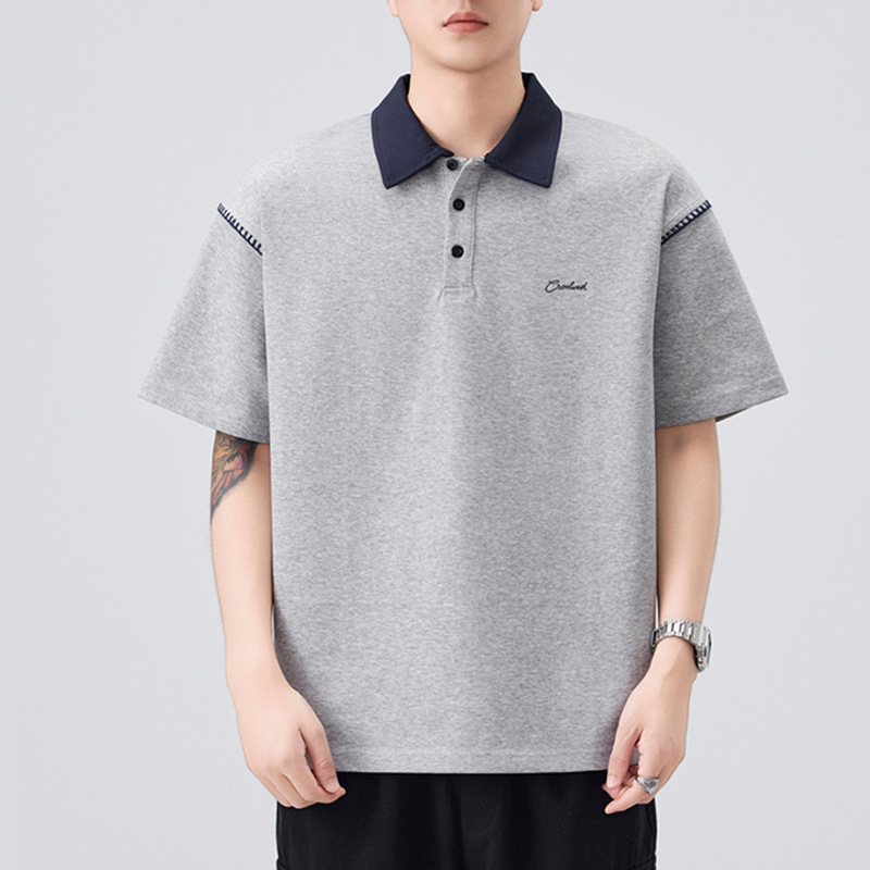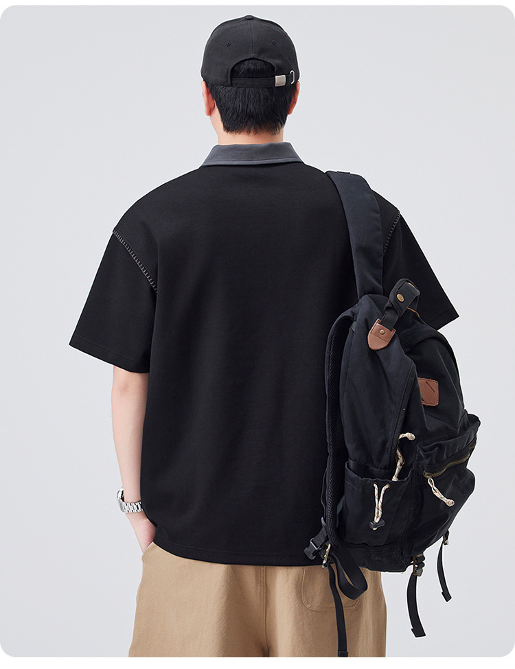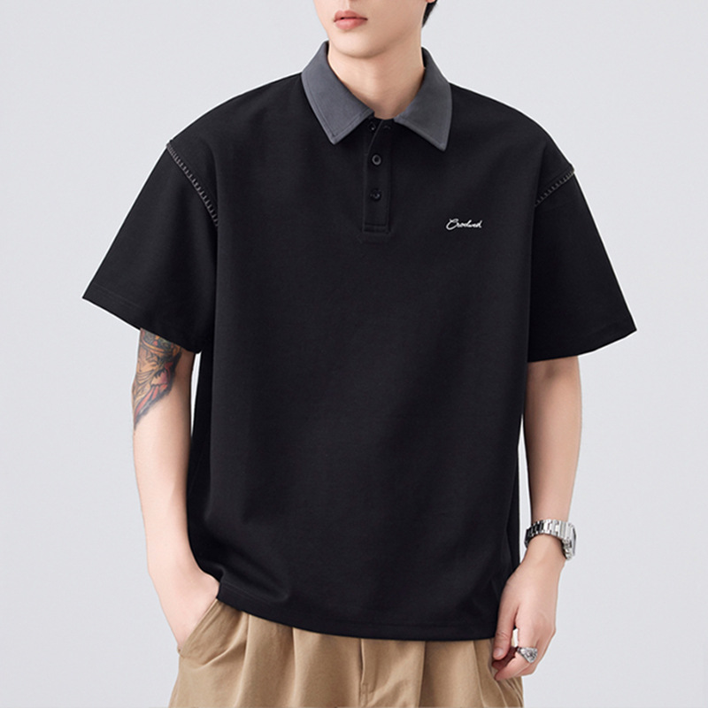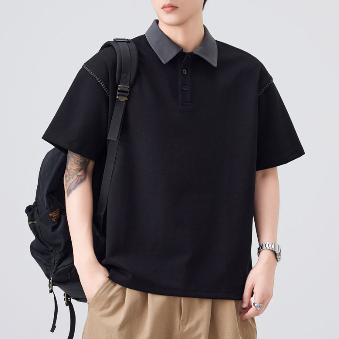 단바오니 | 일본식 심플한 복고풍 디자인 남성 여름 신작 라펠 루즈 반팔 폴로 셔츠 재고 있음스토어 가기