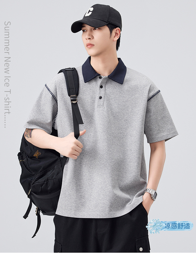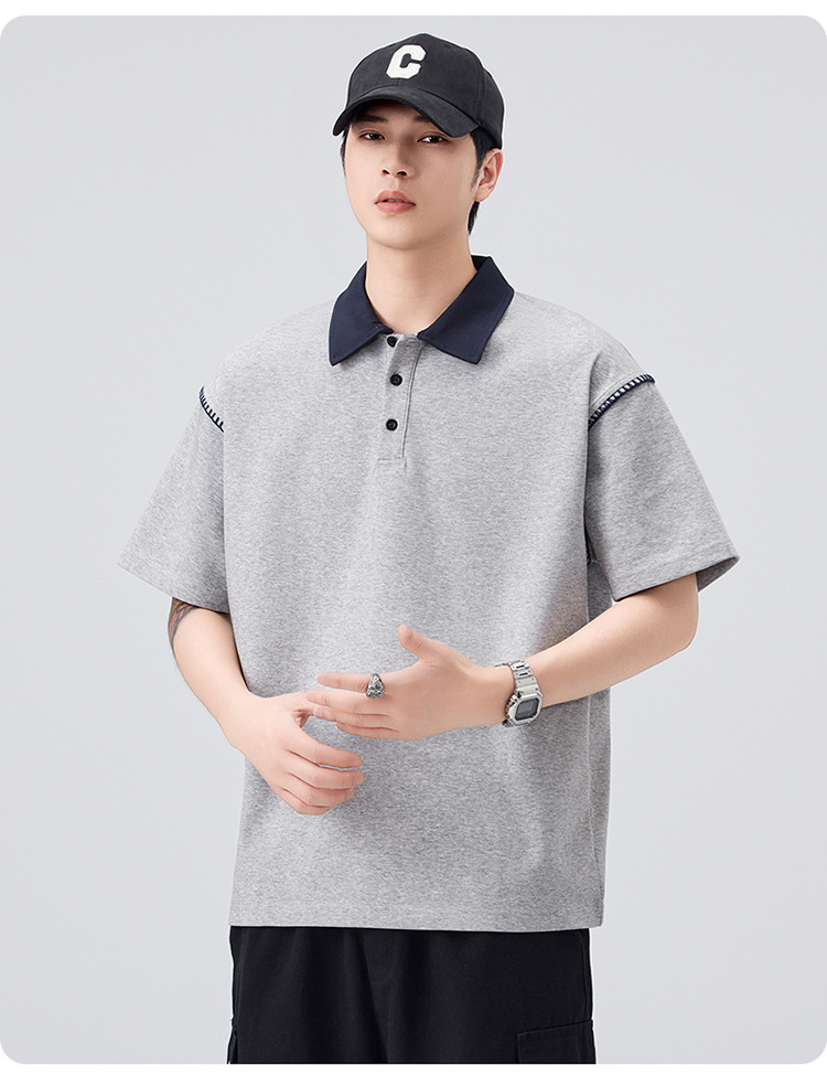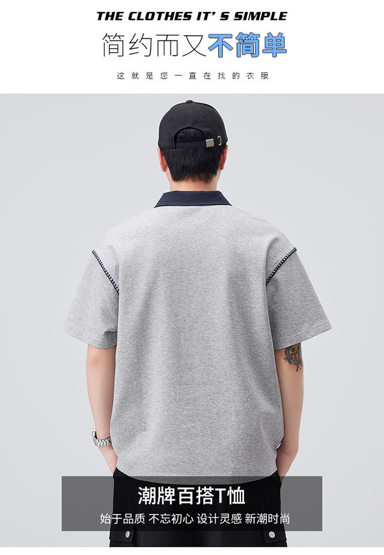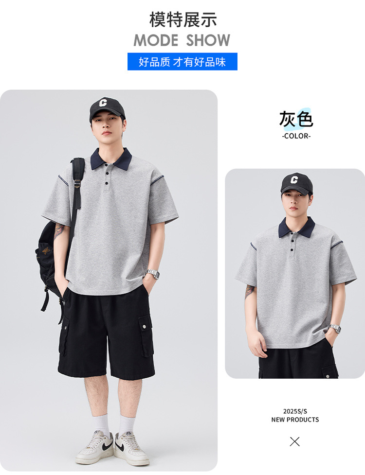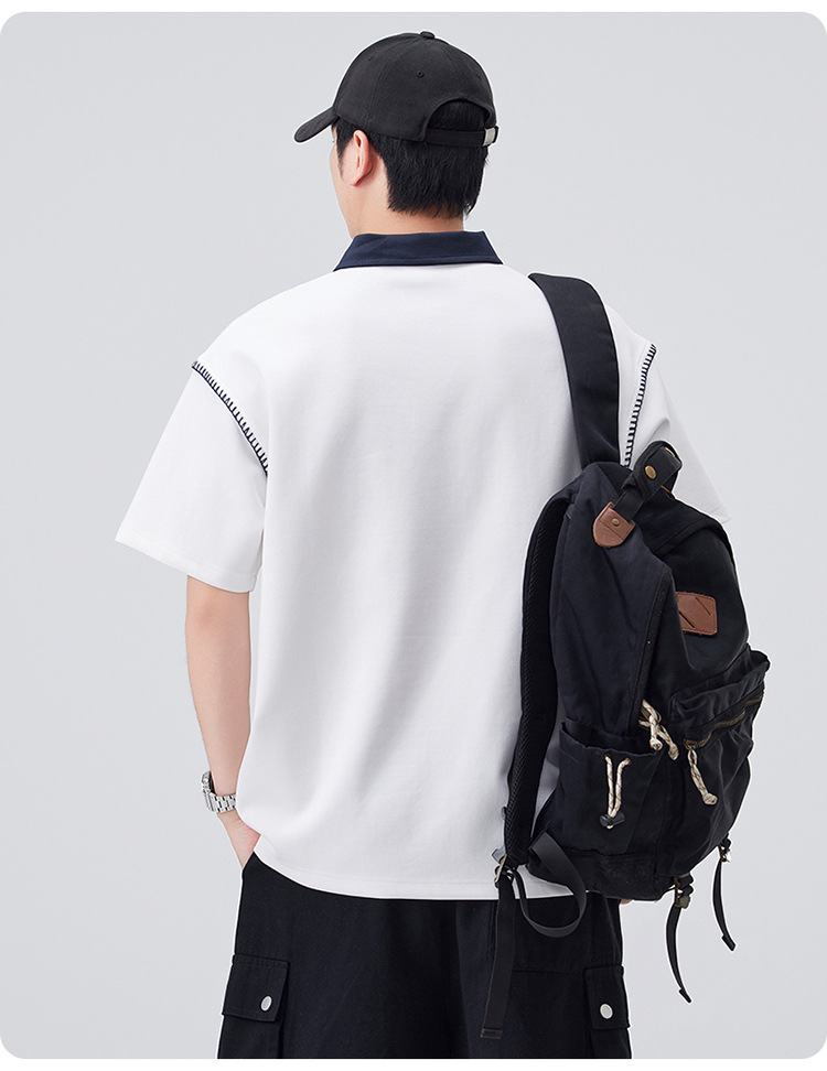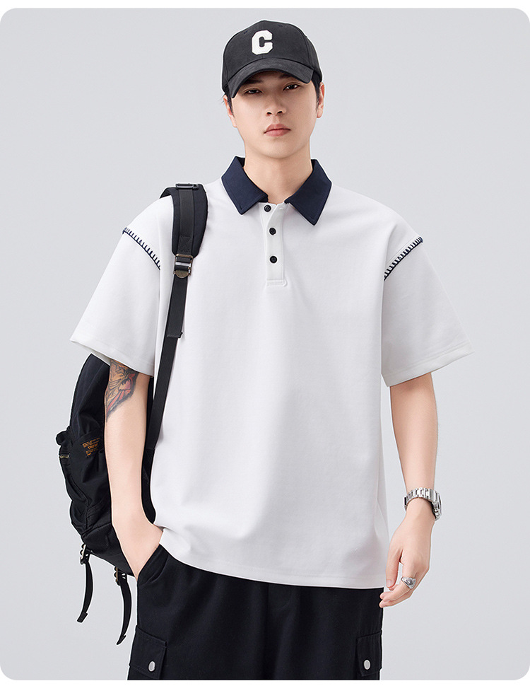 단바오니 | 일본식 심플한 복고풍 디자인 남성 여름 신작 라펠 루즈 반팔 폴로 셔츠 재고 있음스토어 가기