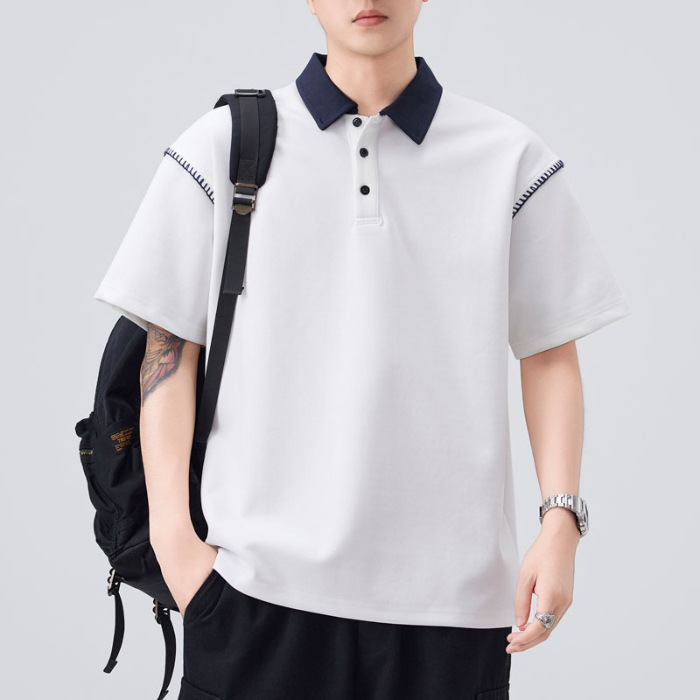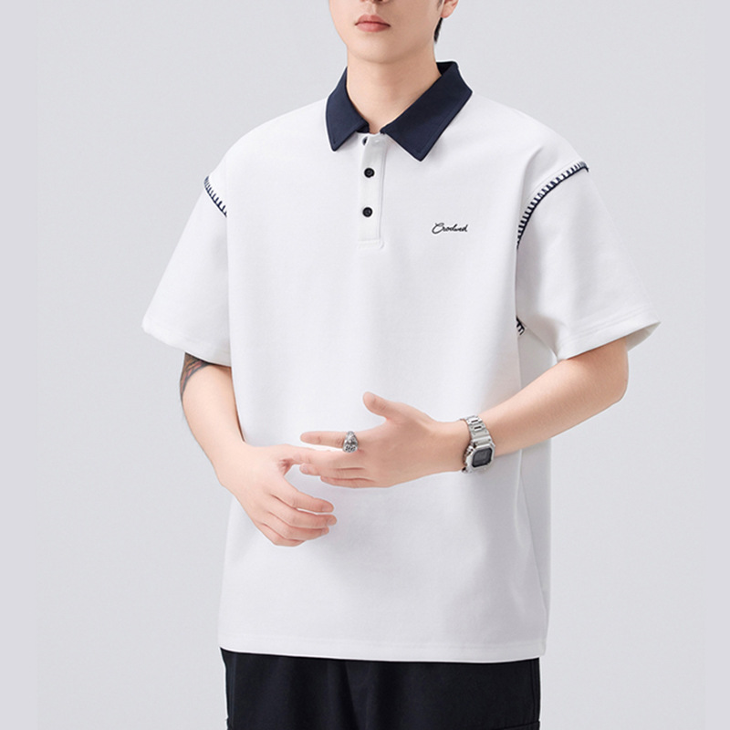 단바오니 | 일본식 심플한 복고풍 디자인 남성 여름 신작 라펠 루즈 반팔 폴로 셔츠 재고 있음