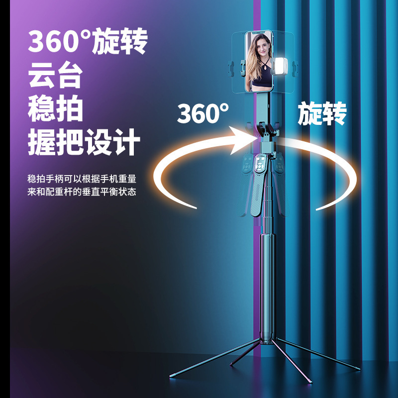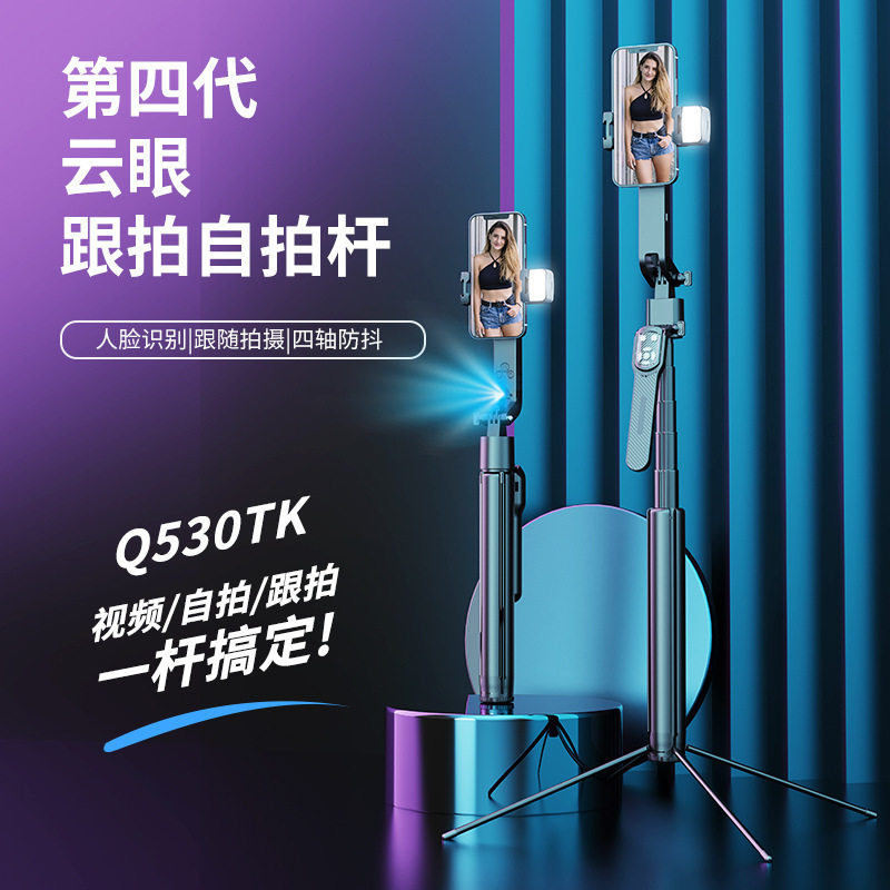 신제품 Q530TK 라이브 필 라이트 셀카 스틱 필 라이트 슈퍼 긴 조절 가능한 휴대용 휴대 전화 홀더 셀카 스틱