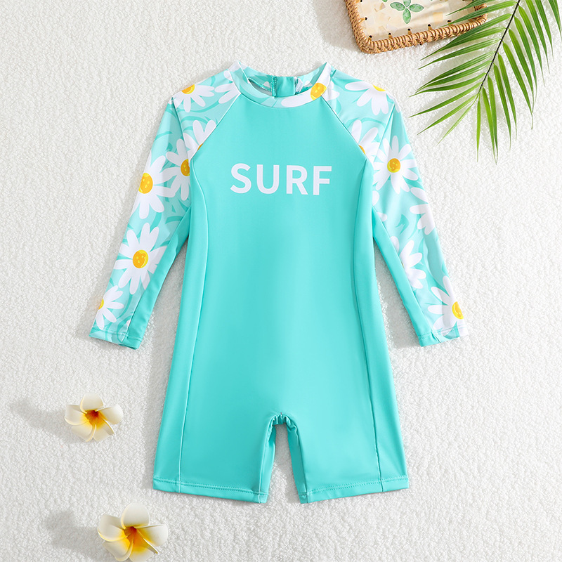 2026년 신상 아마존 유럽 및 미국 스타일의 귀여운 긴팔 여아 수영복, 자외선 차단 온천 및 해변용 아동 수영복스토어 가기