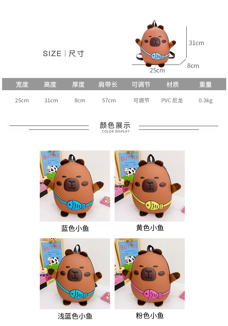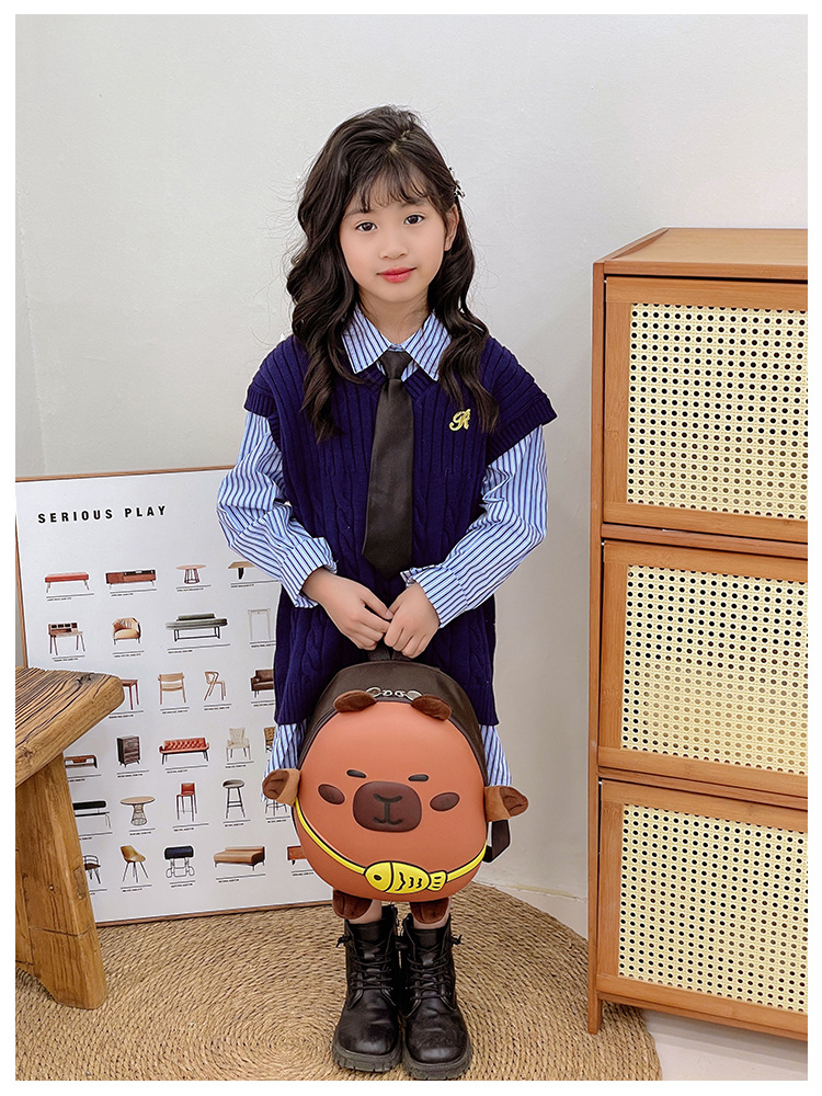 국경 간 Kapibara 어린이 배낭 고가 배낭 소녀 유치원 학생 학교 가방 만화스토어 가기