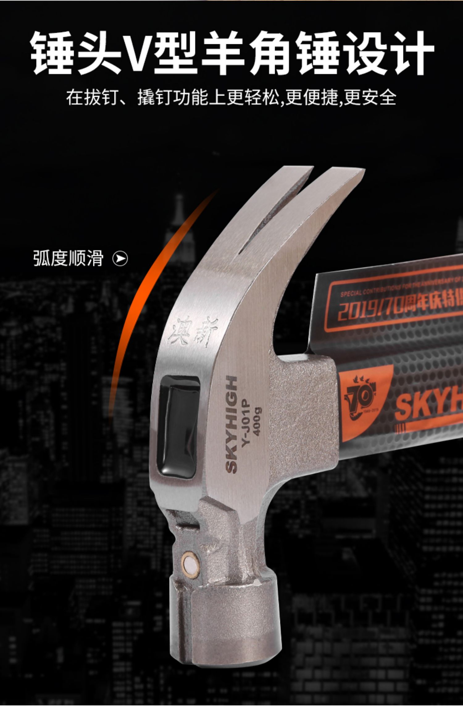• 자석이 포함된 특수강 [치면이 있는 0.4kg각 해머 헤드 및 직선 클로]-[Y-J03M]