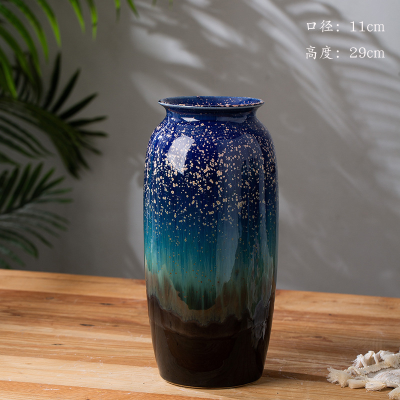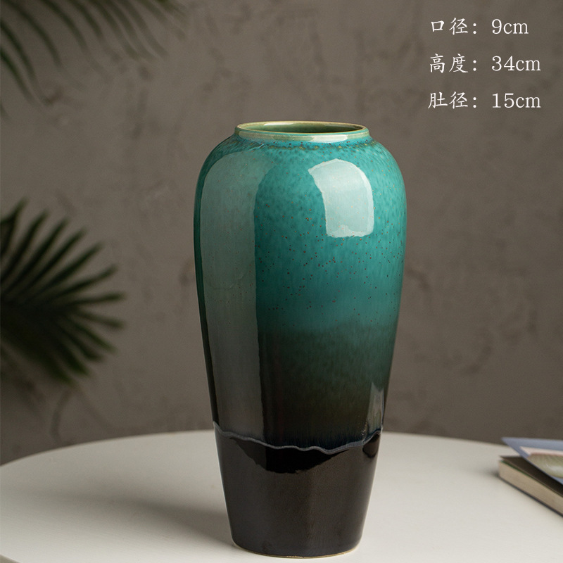 Baoshi Jingdezhen 세라믹 꽃병 장식품 거실 꽃꽂이 새로운 중국 스타일 입구 장식 수경 꽃 장치 복고풍 도자기 냄비