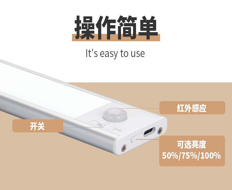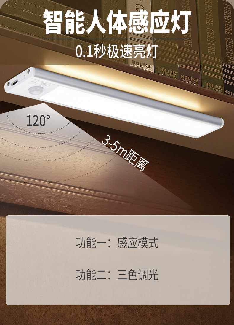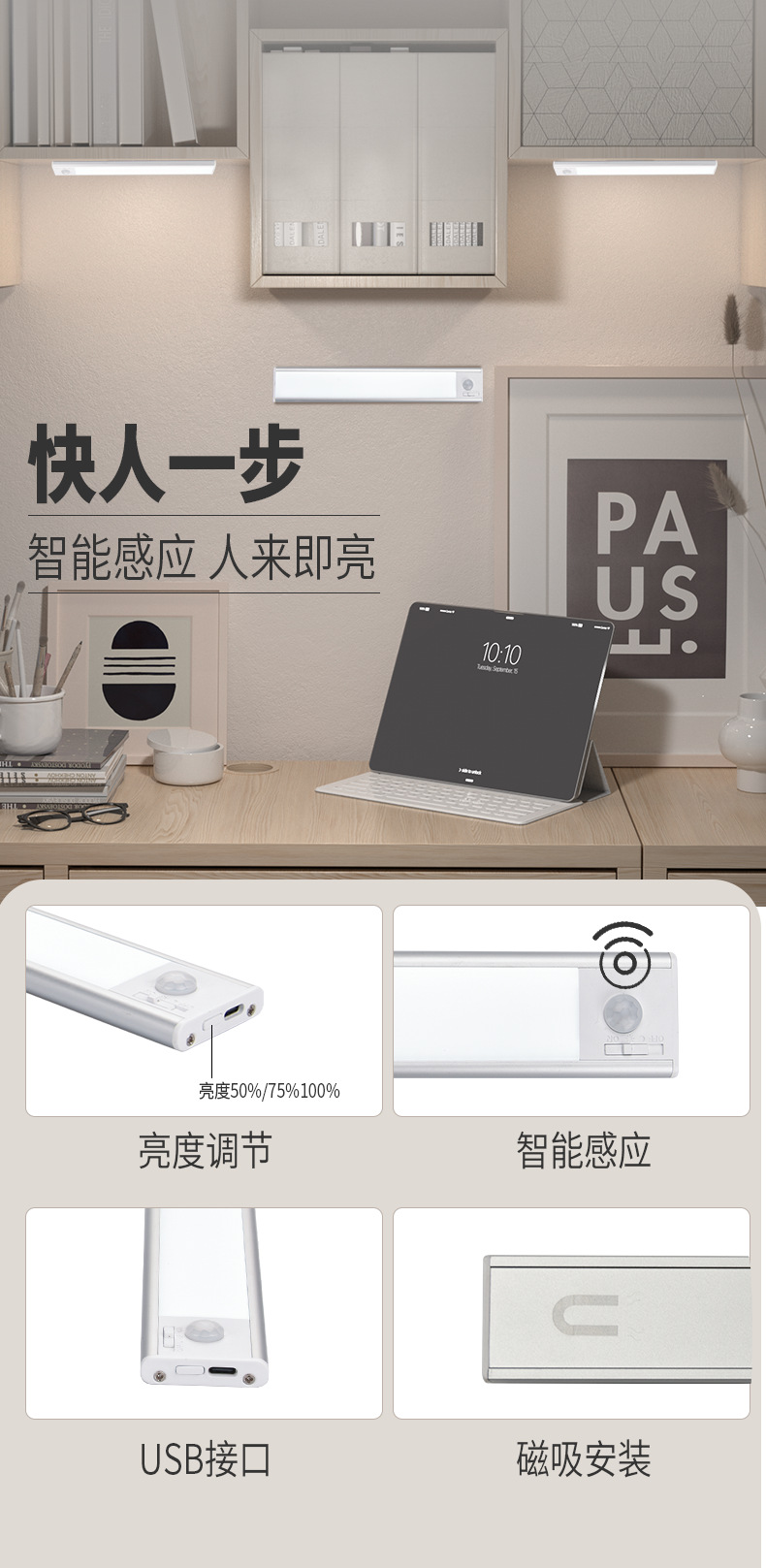 국경을 넘는 인체 자기 유도 센서 램프, 사람이 지나면 꺼지는 옷장 램프, 배선이 필요 없는 충전식 캐비닛 라이트 스트립, 밝기 조절 가능스토어 가기