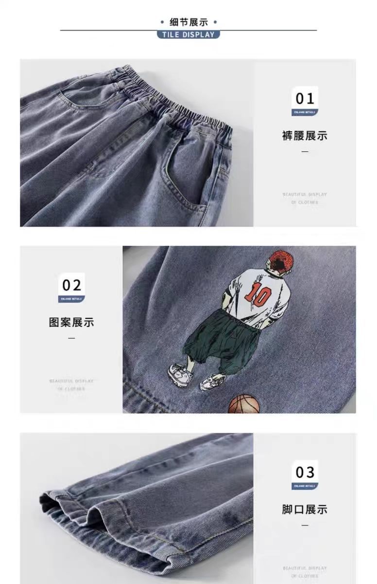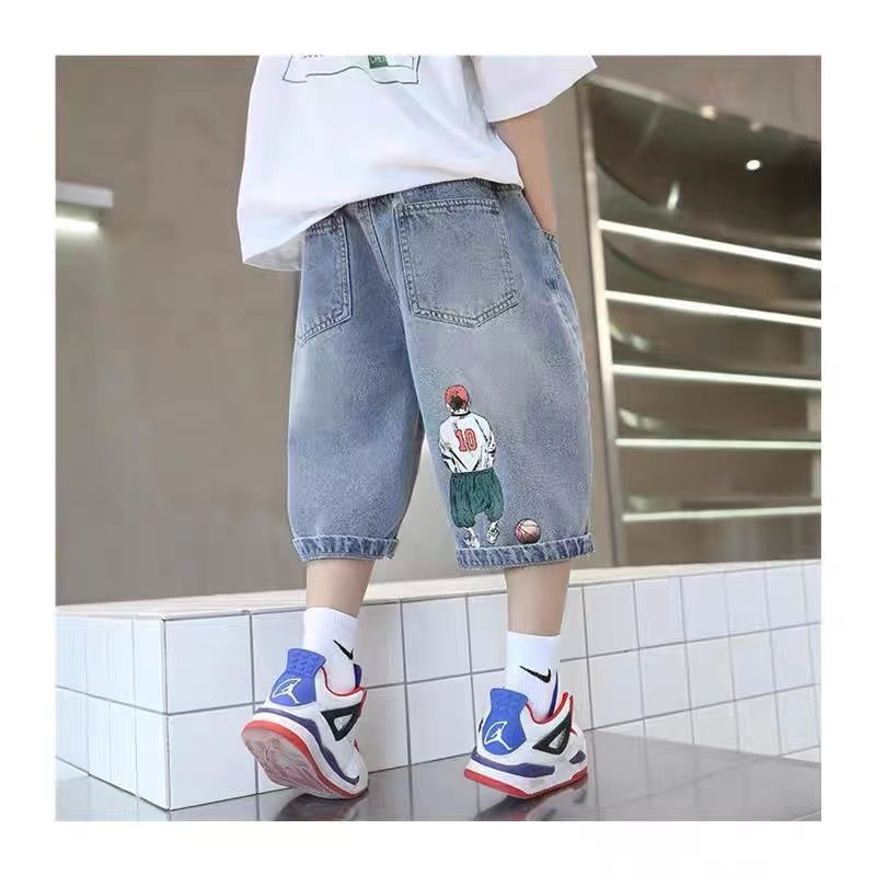 남아용 반바지, 청바지, 무릎 위 7부 바지, 얇은, 중대형 남아용 여름 아우터, 루즈하고 멋진 중간 길이 바지, 트렌디함스토어 가기