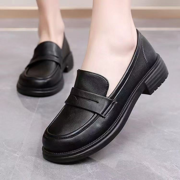 로퍼 여성 신발 검은 색 작은 가죽 신발 2025 새로운 다목적 영국 스타일 부드러운 단독 슬립 온 작업 신발
