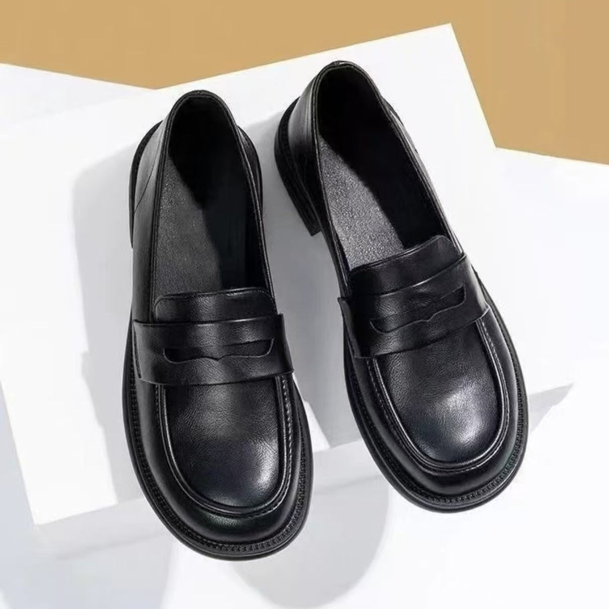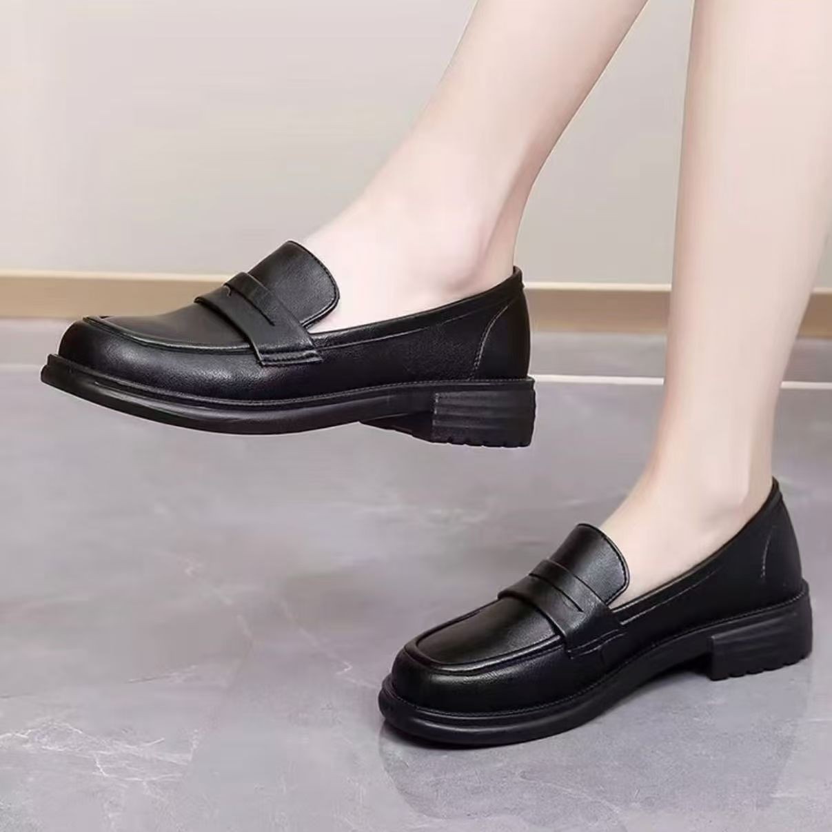 로퍼 여성 신발 검은 색 작은 가죽 신발 2025 새로운 다목적 영국 스타일 부드러운 단독 슬립 온 작업 신발스토어 가기