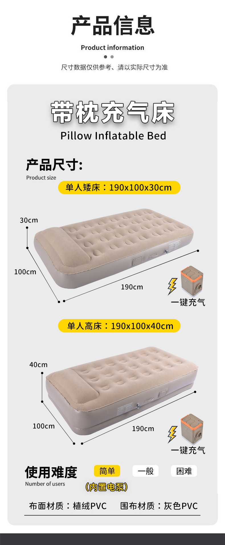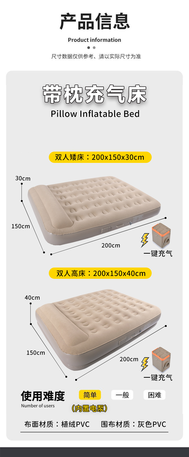 새로운 싱글/더블 자동 팽창식 매트리스(머리받침대 포함) 야외 캠핑, 해변 캠핑 침대, 게으른 사람들을 위한 에어매트 용품