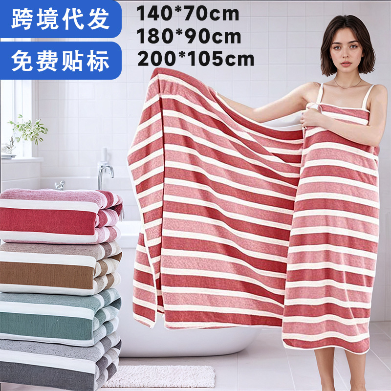 크로스보더 스트라이프 대형 목욕 타월 190*80/200*105 목욕 타월 산호 벨벳 흡수성 부드러운 세안 목욕 타월