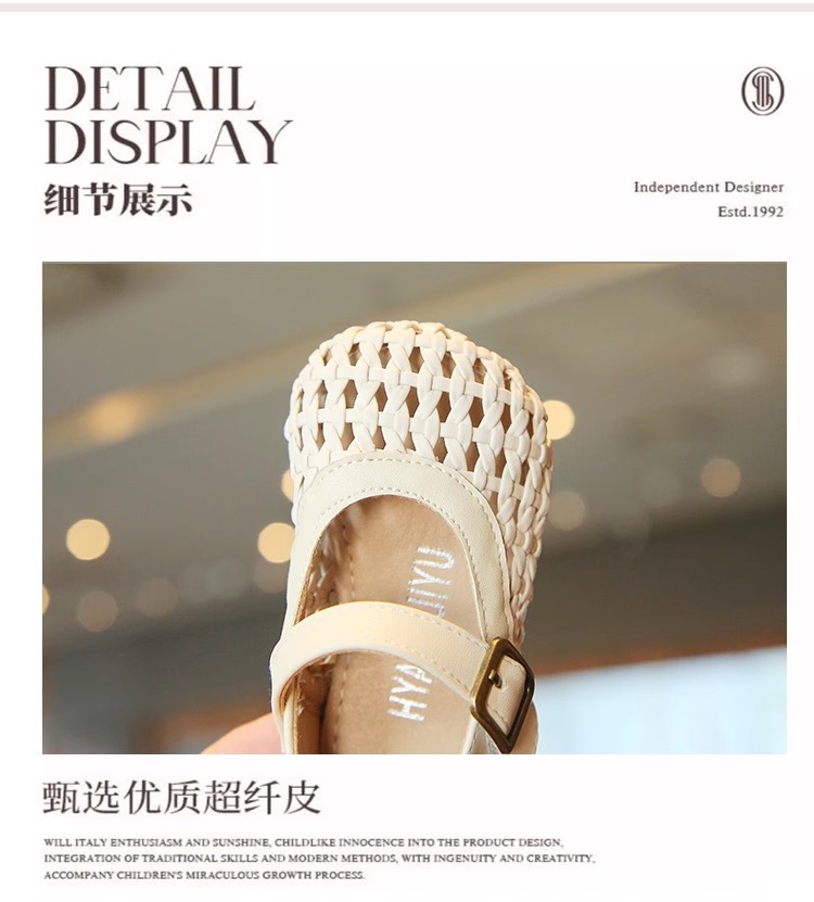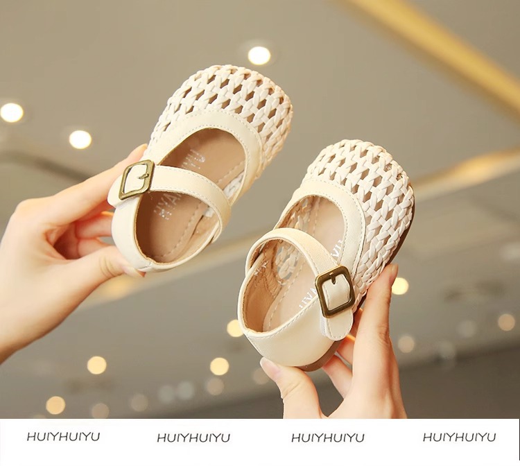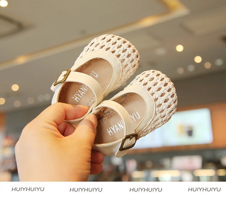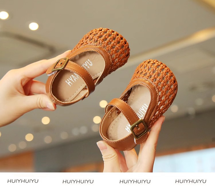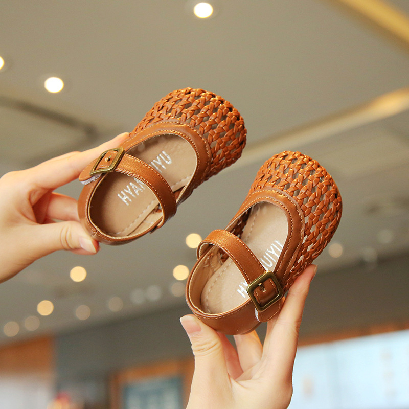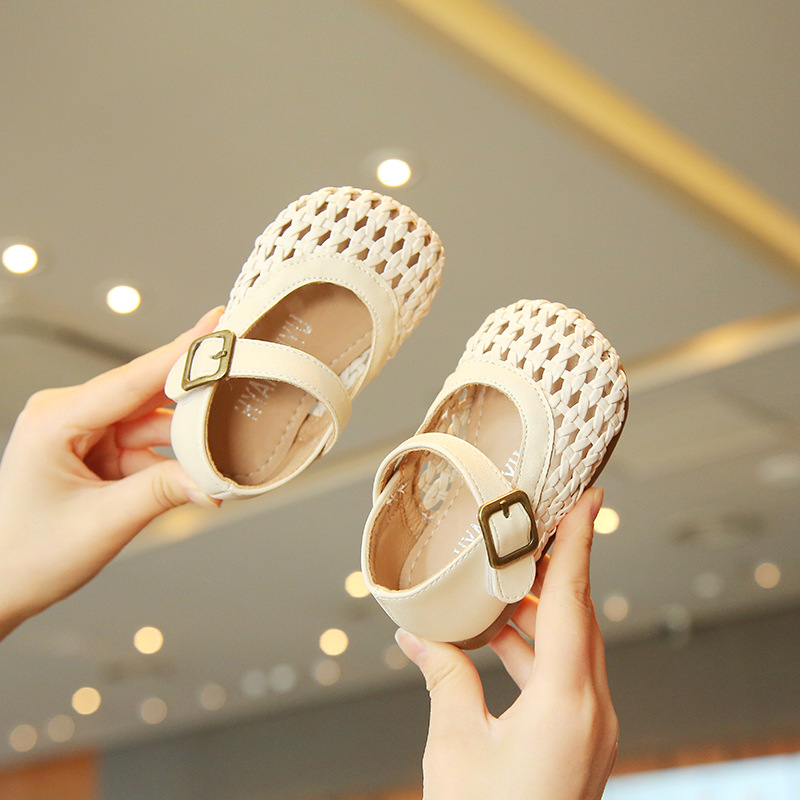 여아용 작은 가죽 신발, 둥근 발가락으로 짠 신발, 속이 빈 통기성 여름 샌들, 2025 아동용 싱글 슈즈, 버클, 다용도 및 트렌디함스토어 가기