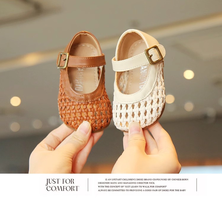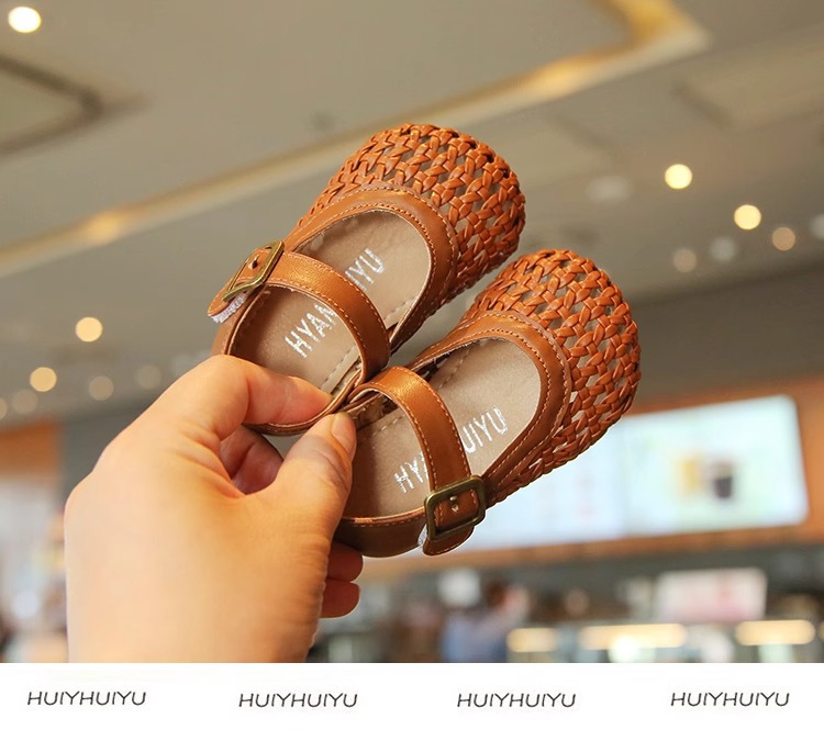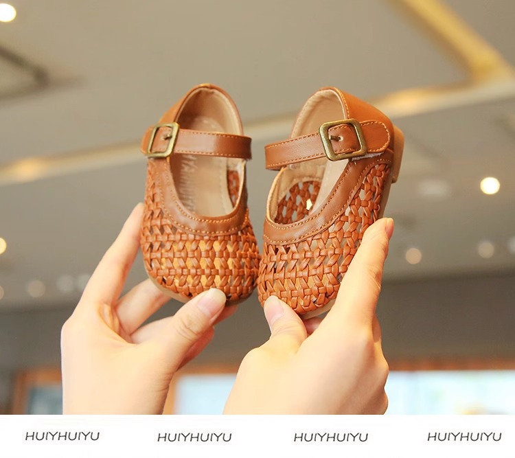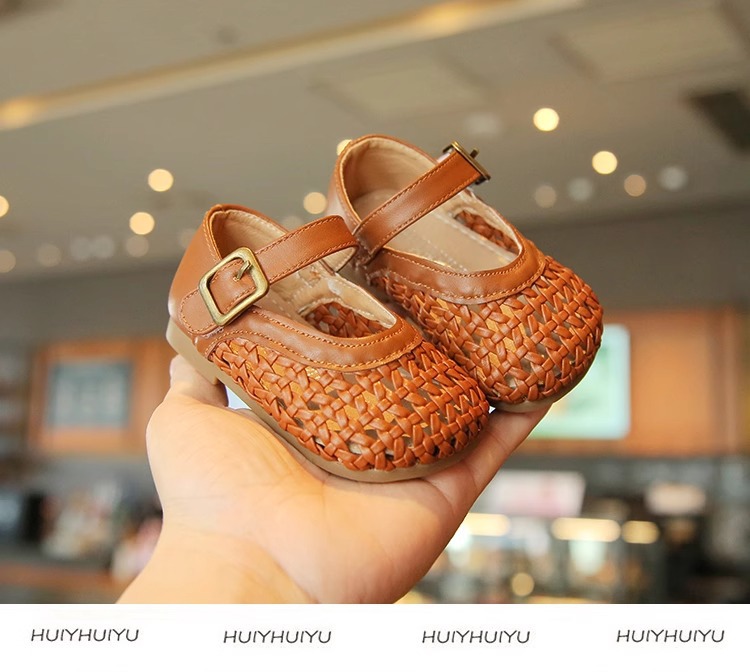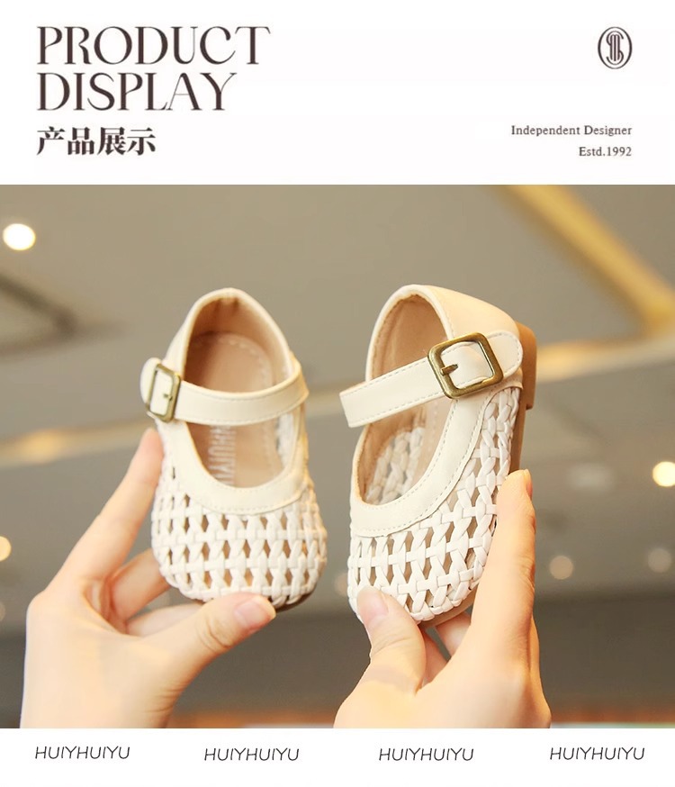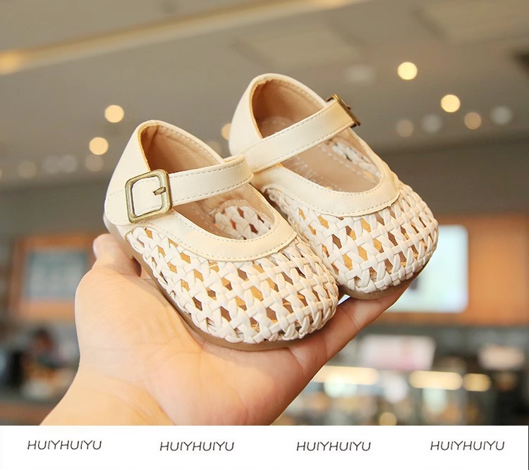 여아용 작은 가죽 신발, 둥근 발가락으로 짠 신발, 속이 빈 통기성 여름 샌들, 2025 아동용 싱글 슈즈, 버클, 다용도 및 트렌디함스토어 가기