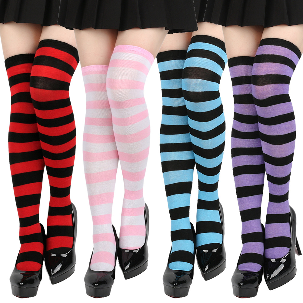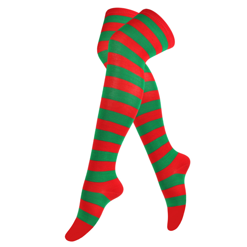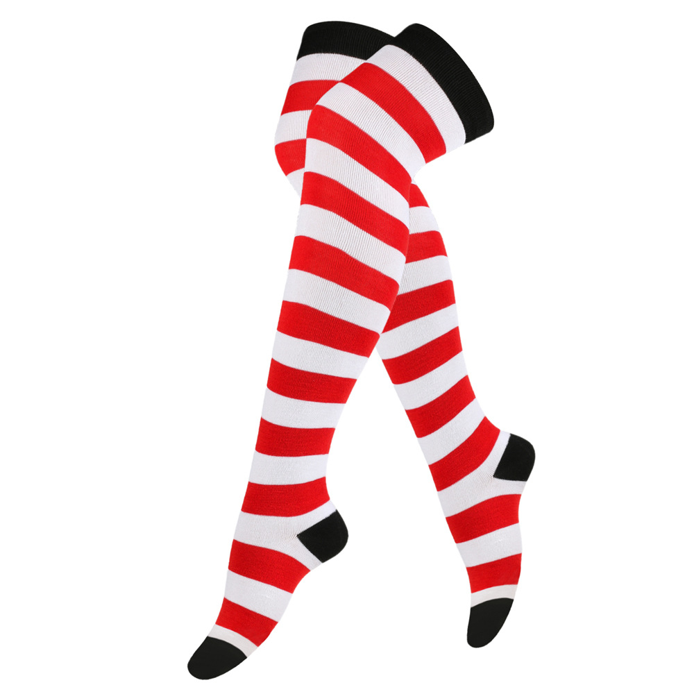 크리스마스 양말 스트라이프 허벅지 양말 여성 스타킹 일본식 긴 양말 무릎 양말 할로윈 코스프레 파티 양말