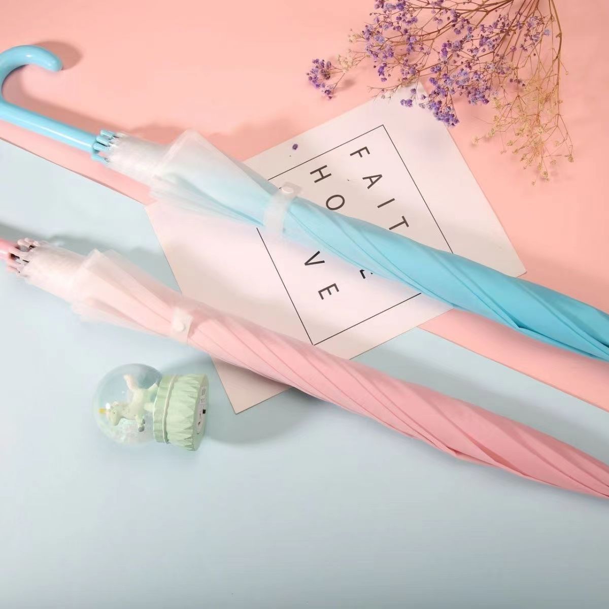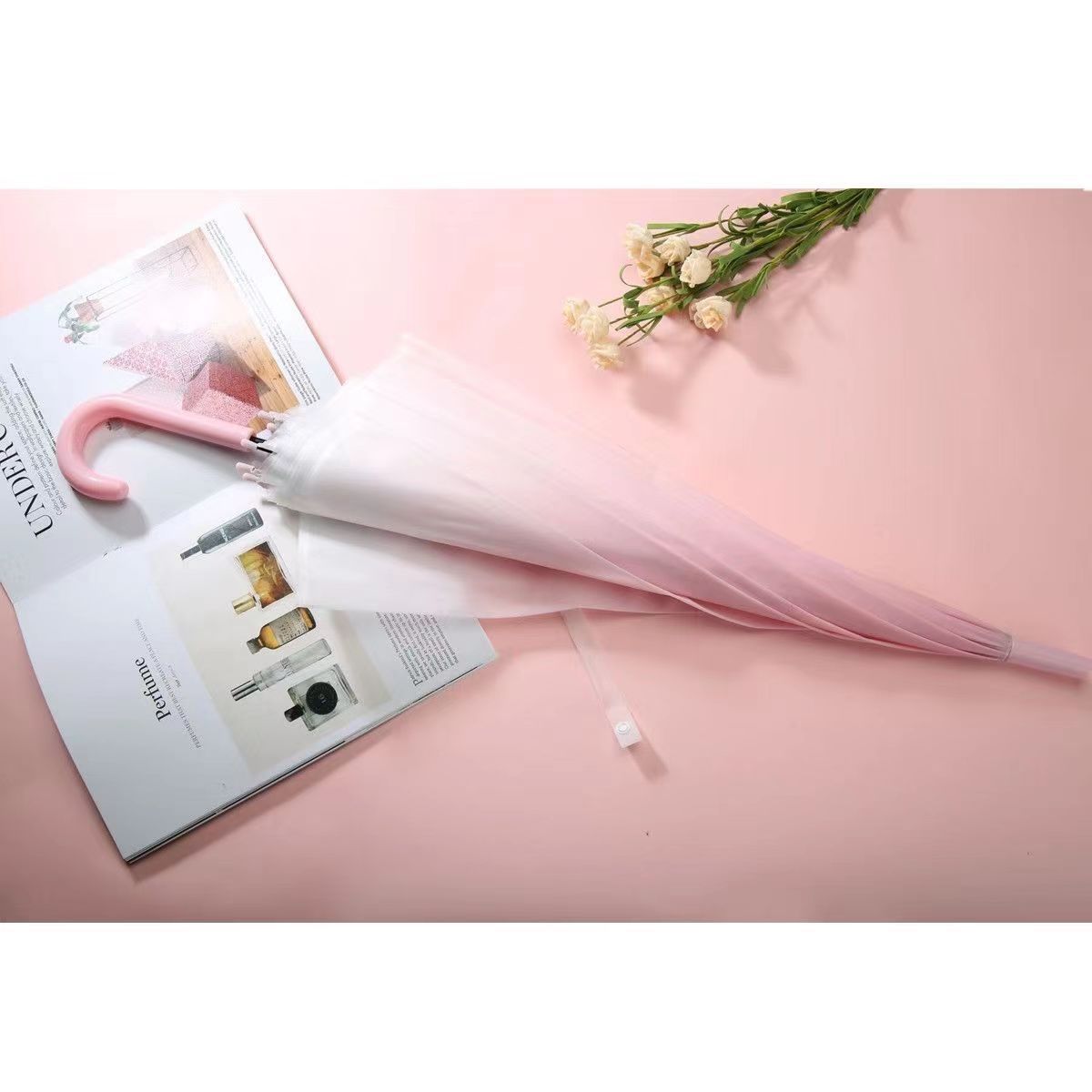 신상품 입고, 무광 그라데이션 고급스러운 인기 어린이용 두꺼운 손잡이 우산, 투명 댄스 우산, 1개부터 도매 가능스토어 가기