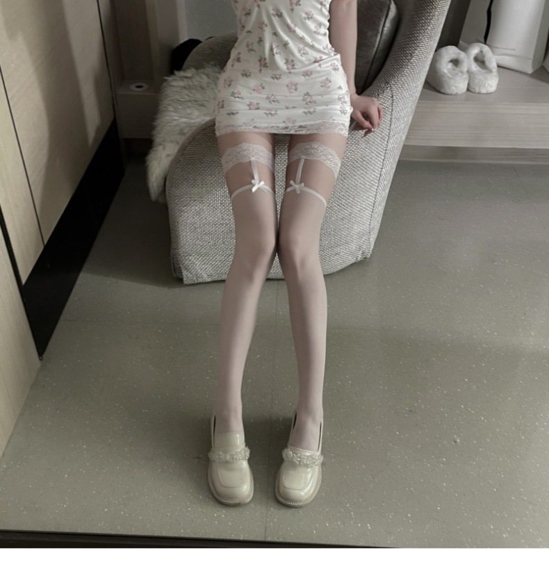 • 흰 리본 망사 스타킹 + 속옷?비밀 배송?