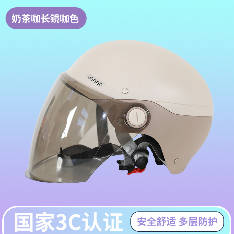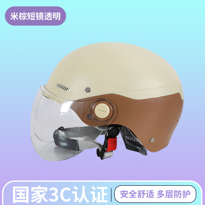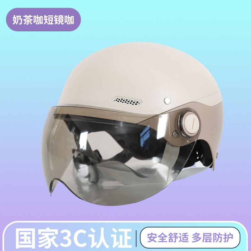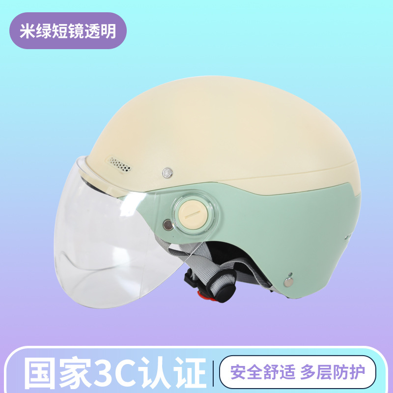 제조업체 도매 3C 인증 전기 자동차 헬멧 반 헬멧 남성과 여성 모두 같은 스타일 올 시즌 컬러 매칭 차양 안전 헬멧