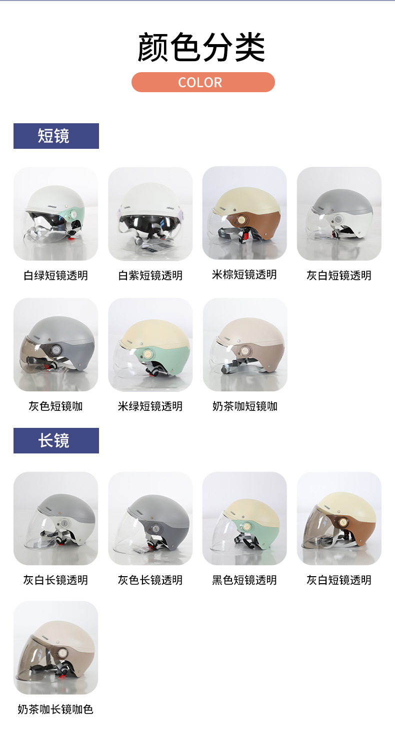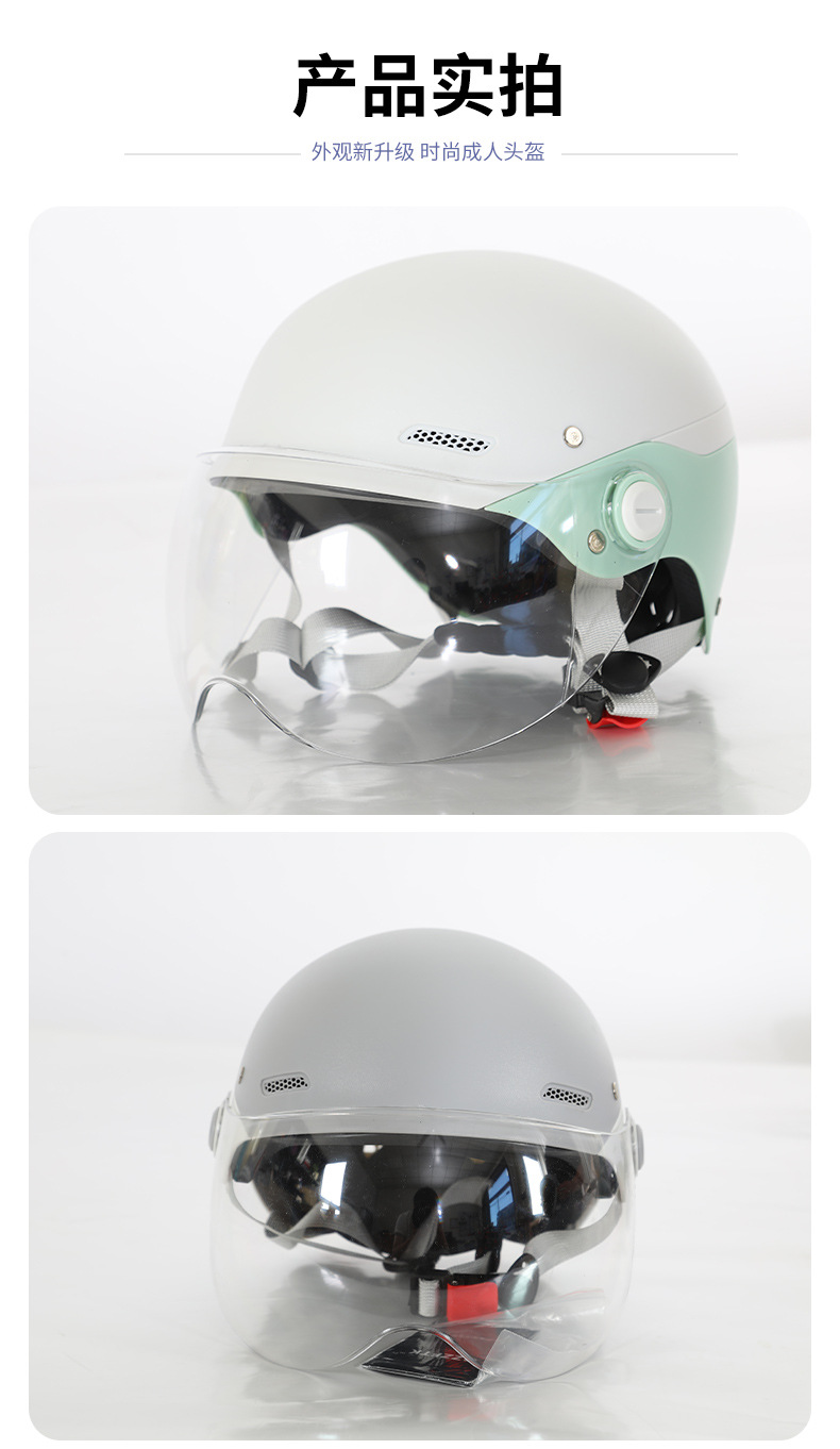 제조업체 도매 3C 인증 전기 자동차 헬멧 반 헬멧 남성과 여성 모두 같은 스타일 올 시즌 컬러 매칭 차양 안전 헬멧스토어 가기