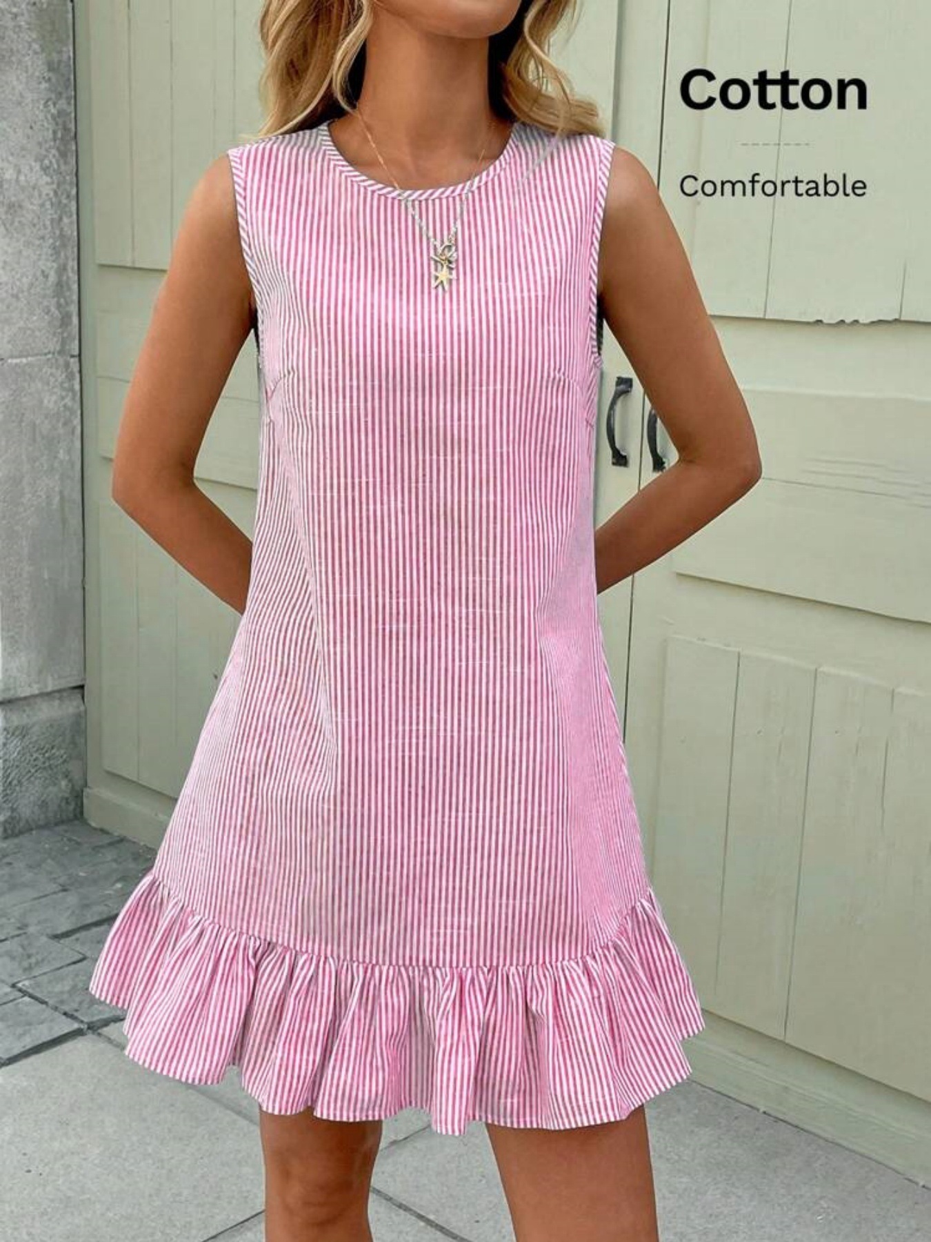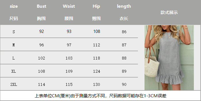 유럽과 미국의 가을 스트라이프 면마 민소매 러플 원피스, 크로스보더 독립 스테이션 아마존 핫 아이템