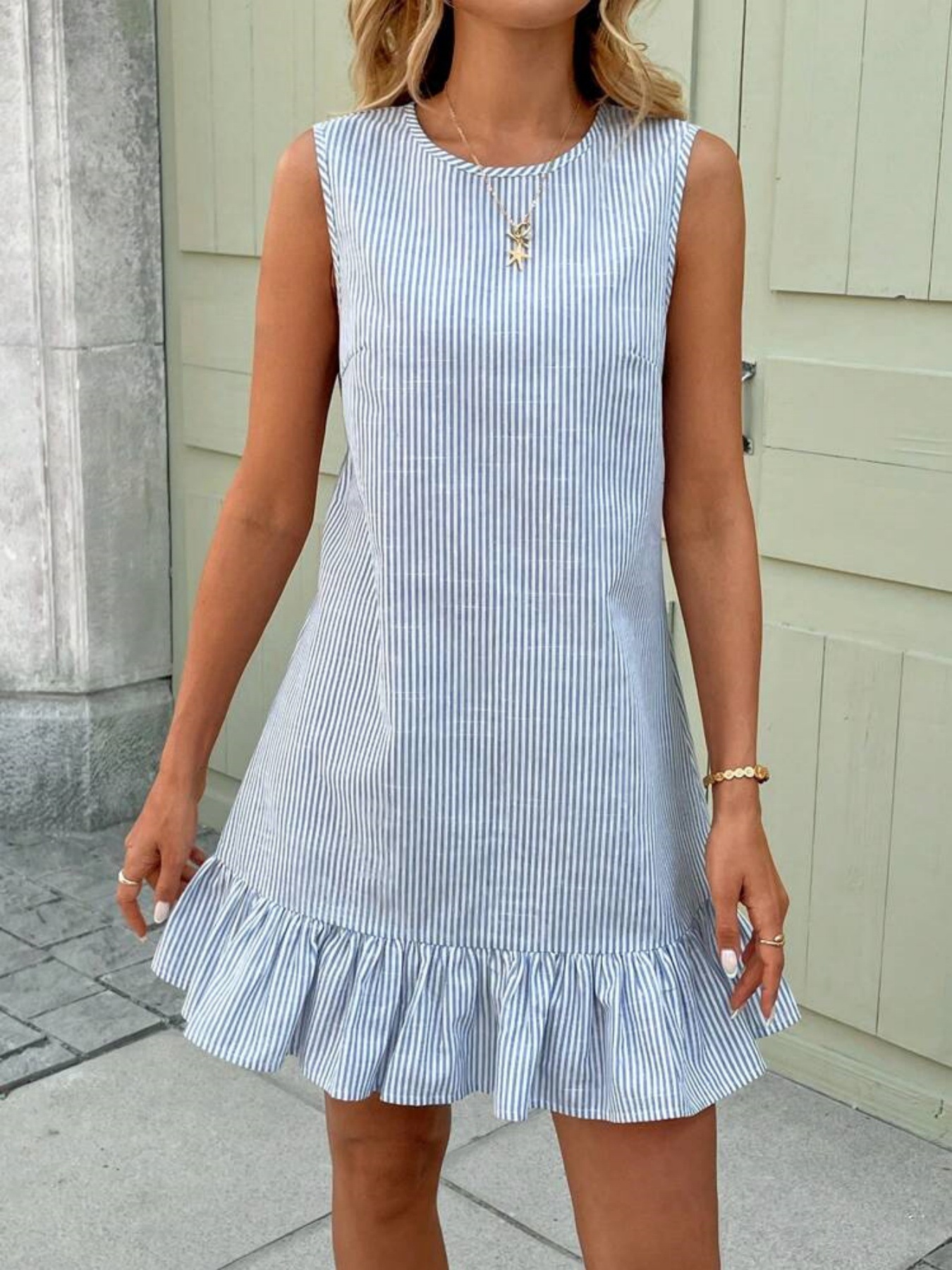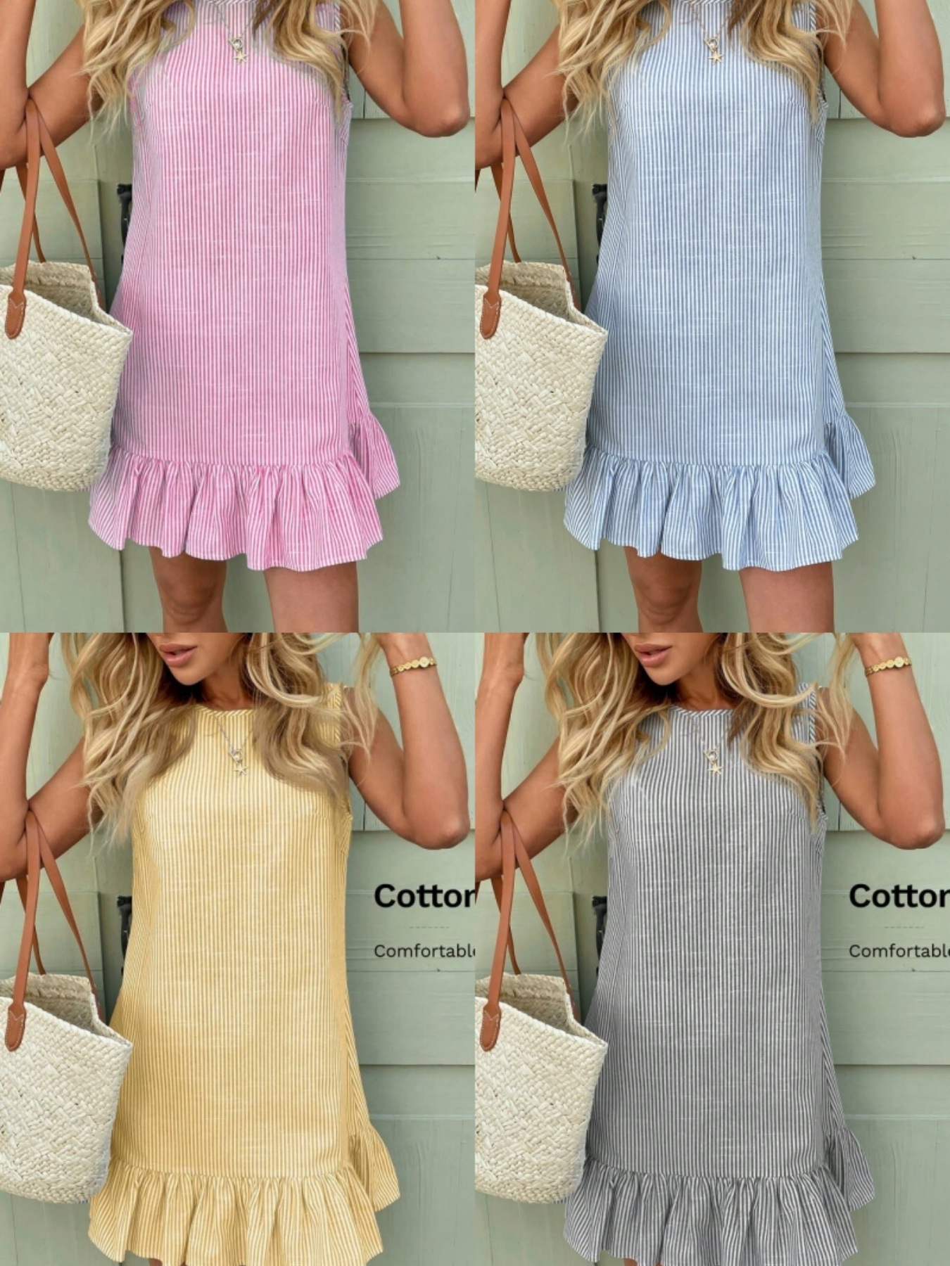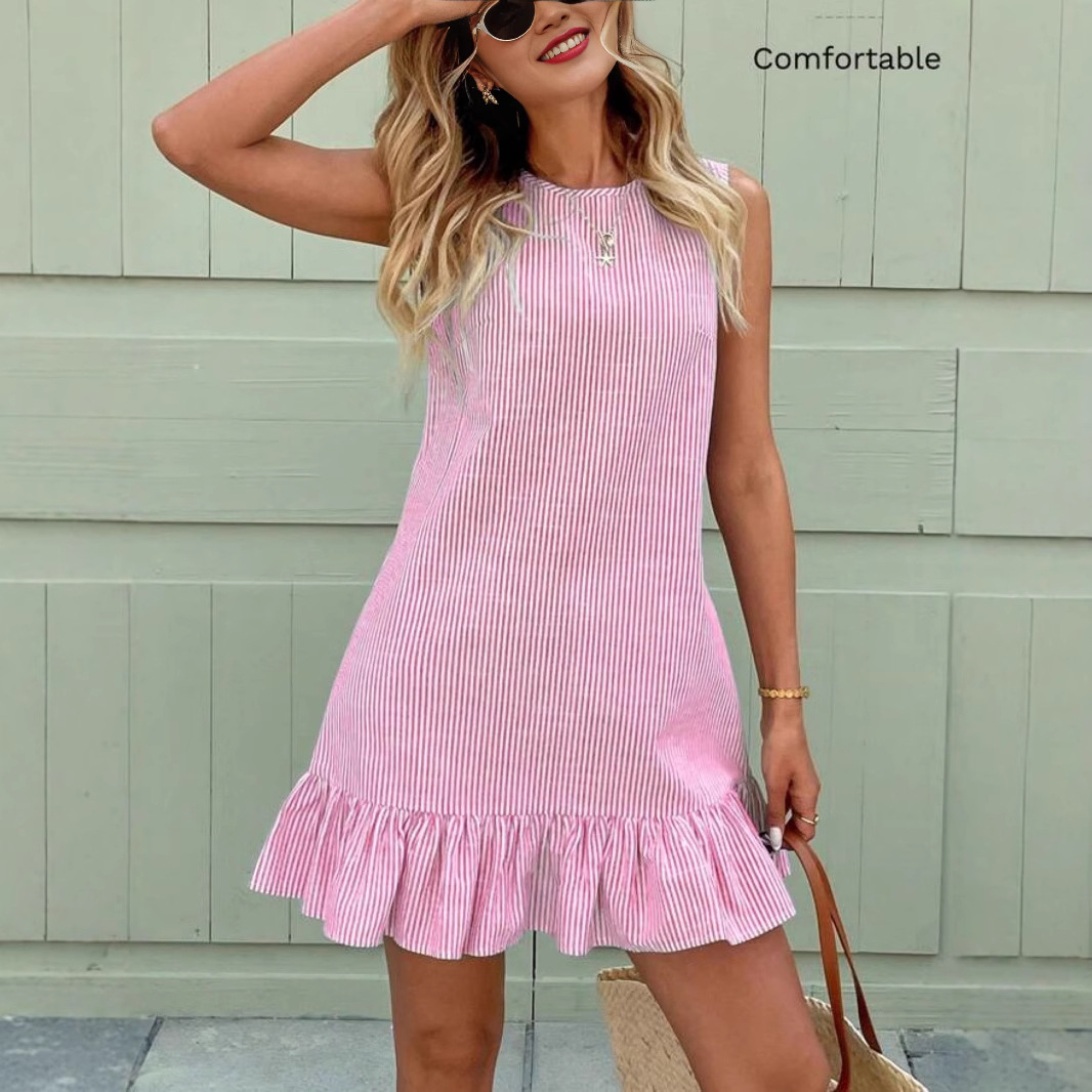 유럽과 미국의 가을 스트라이프 면마 민소매 러플 원피스, 크로스보더 독립 스테이션 아마존 핫 아이템스토어 가기