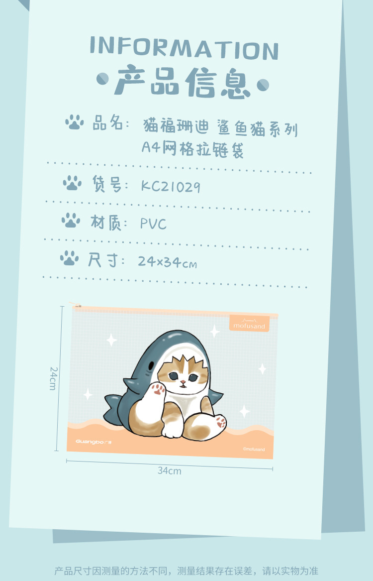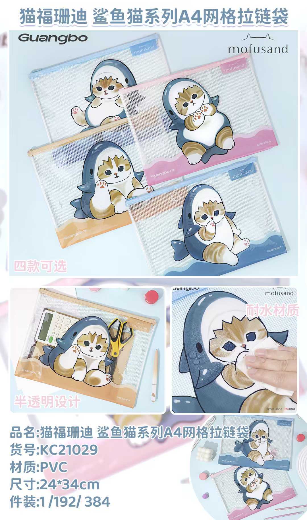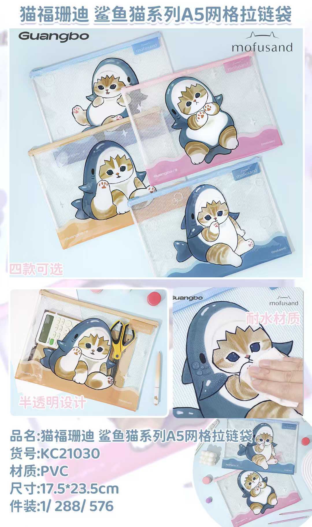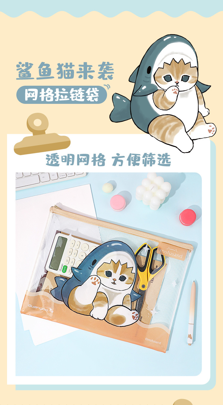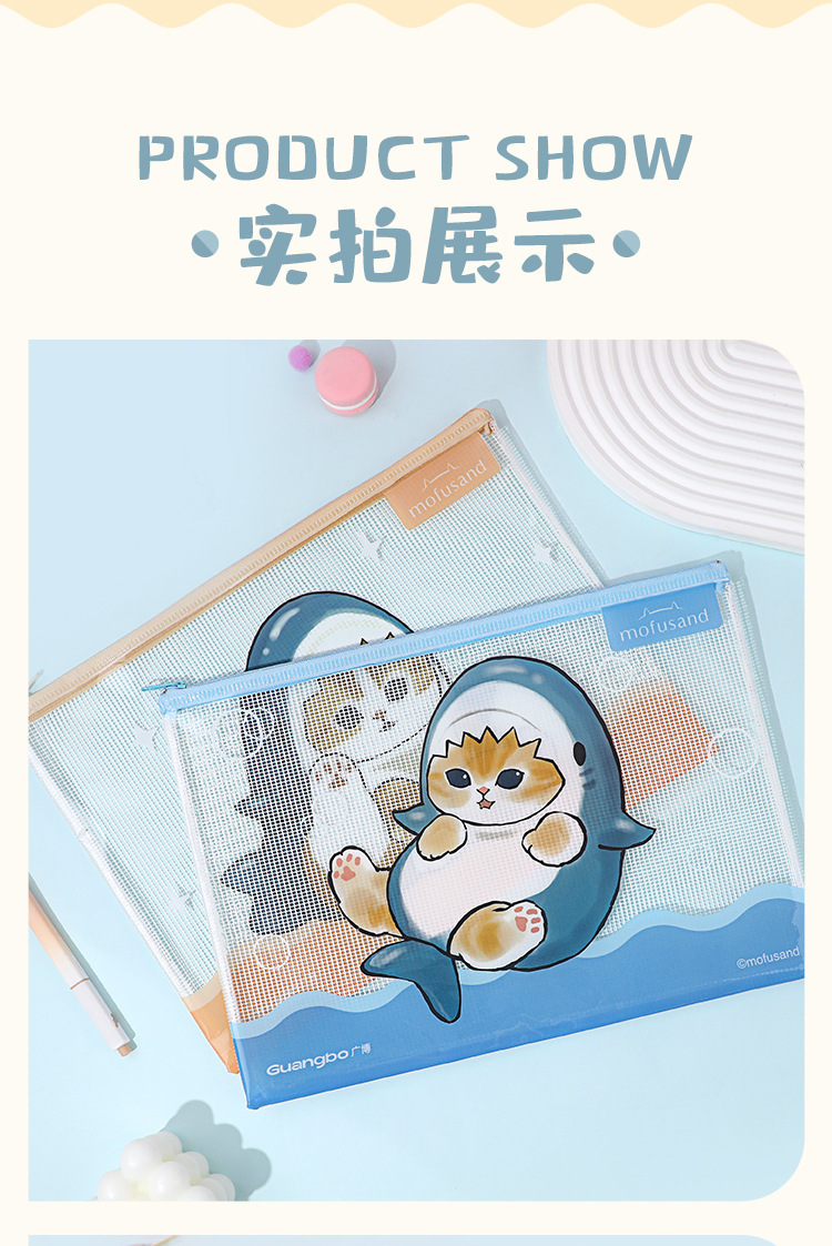 产品名称: 鲨鱼猫网格袋文件袋