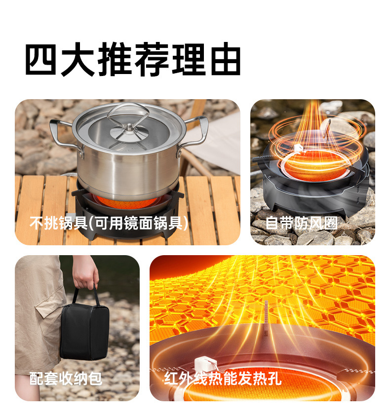 • 초박형 방풍 적외선 스토브 + 무료 보관 가방 어댑터