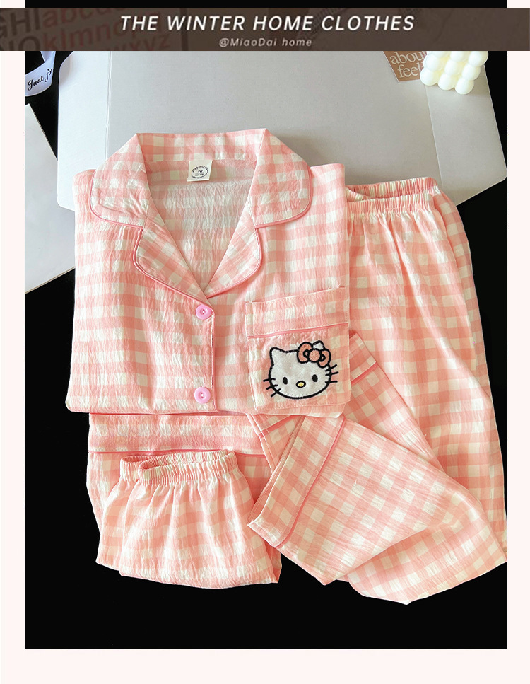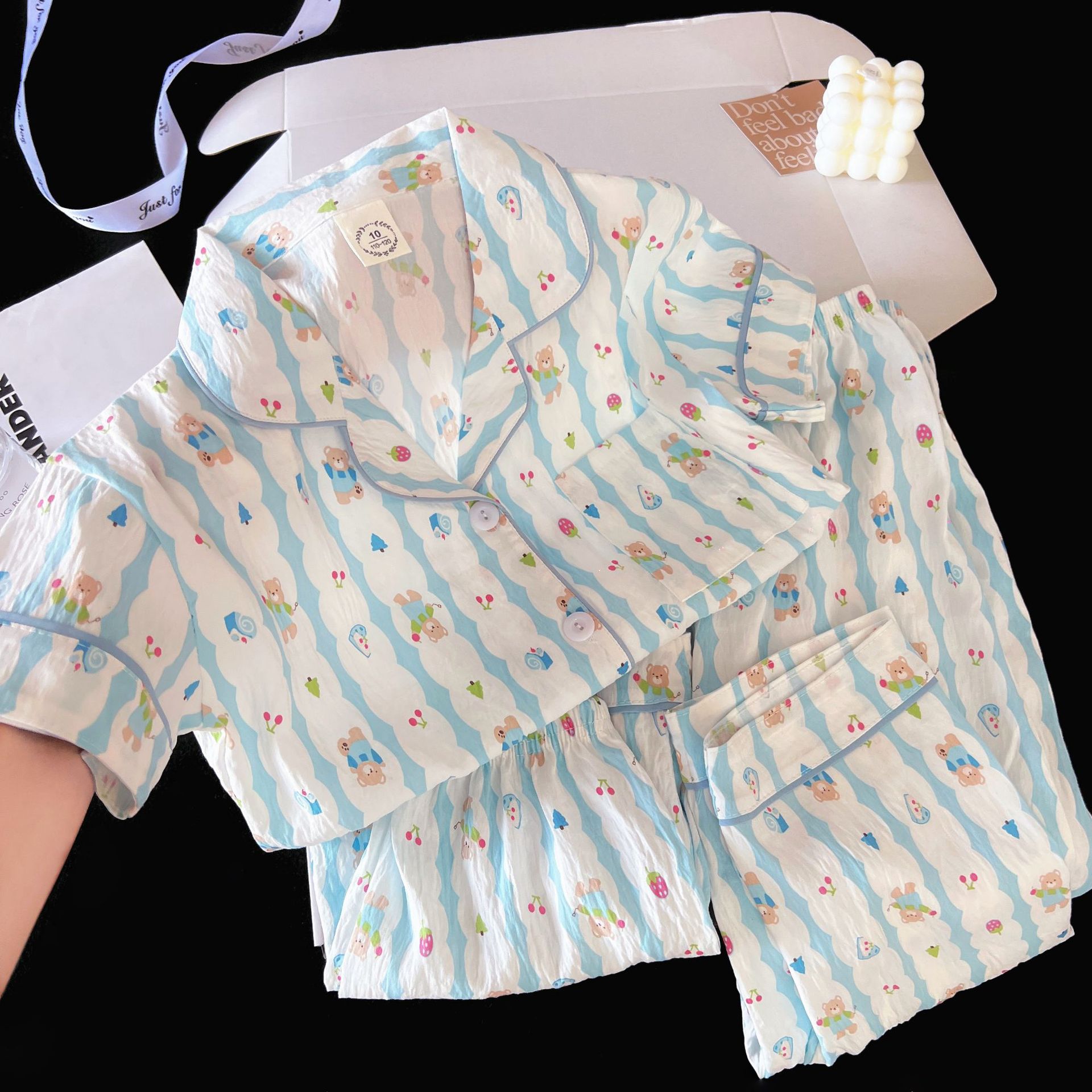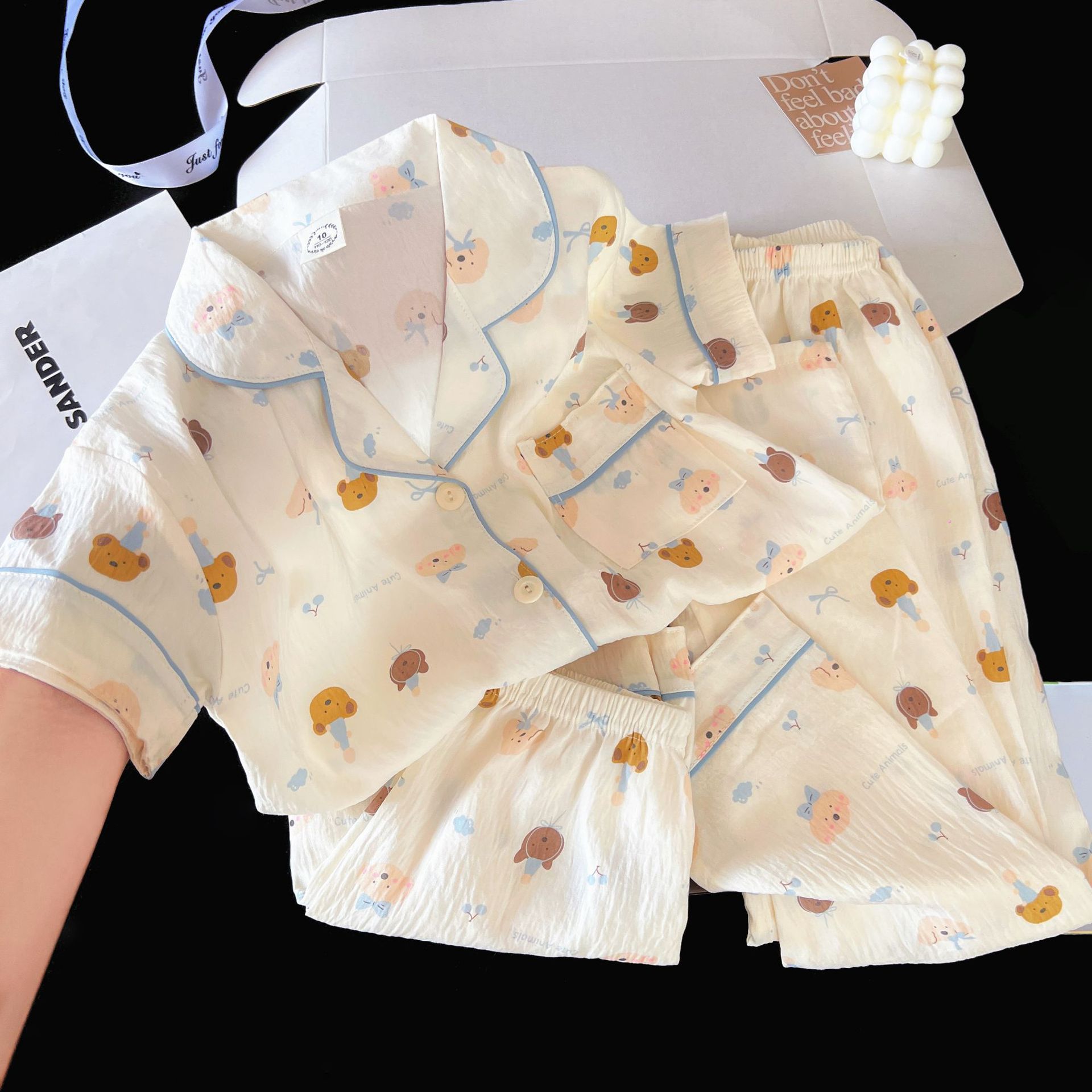 여름 어린이 잠옷 소녀 클라우드 코튼 3 피스 세트 공주 얇은 소녀 중대형 어린이 에어컨 가정 의류 세트스토어 가기