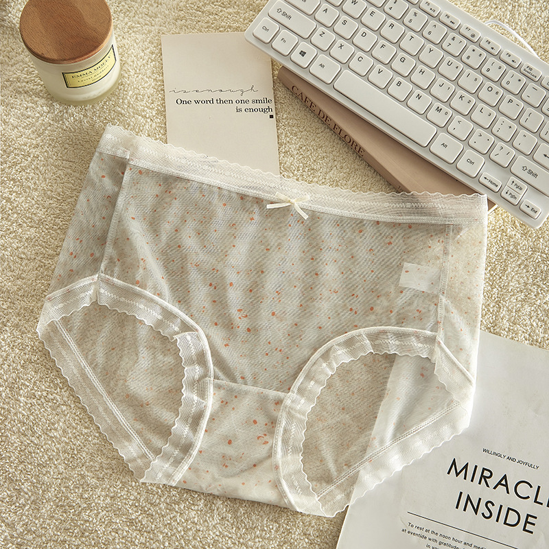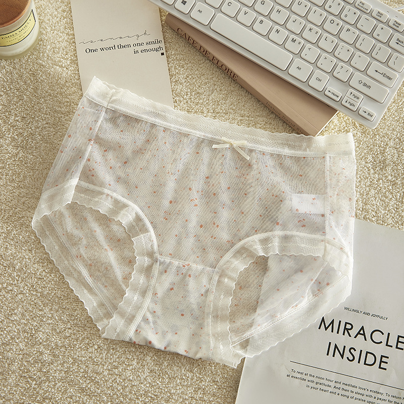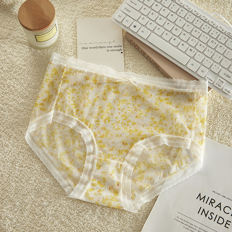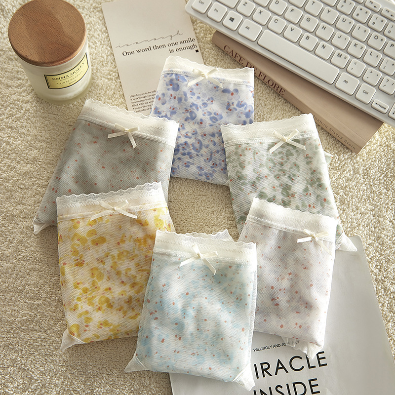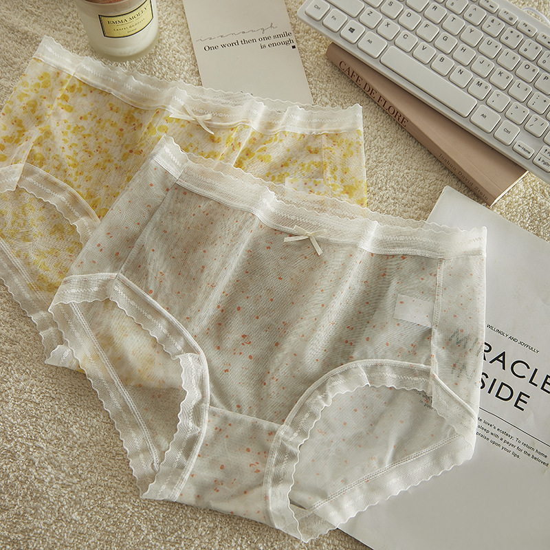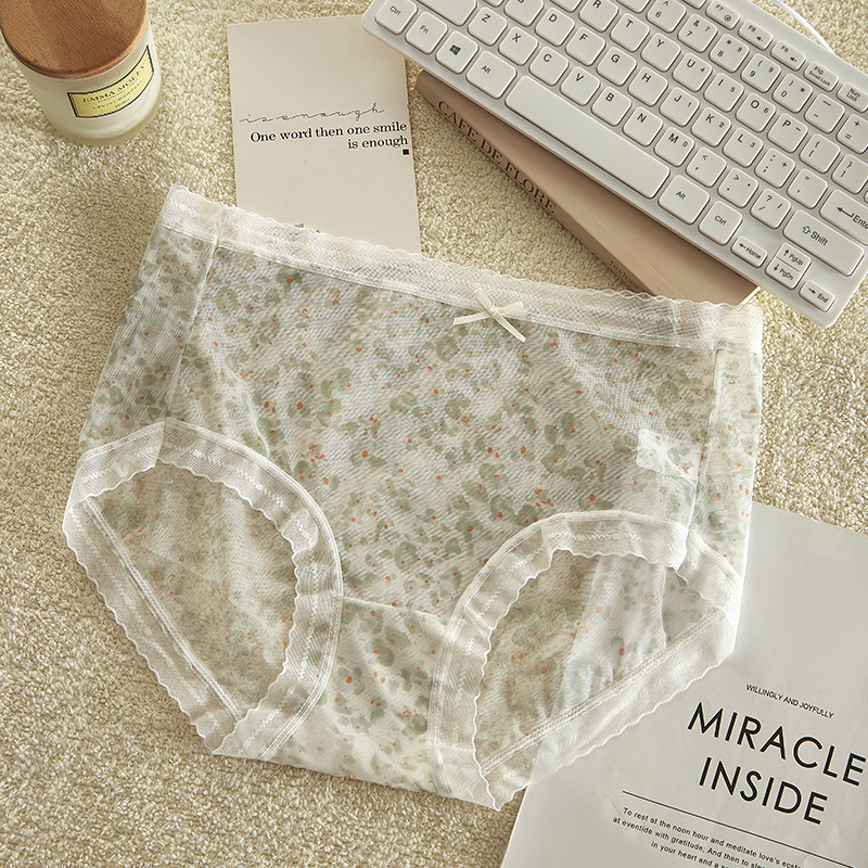 여름 달콤한 소녀 속옷 작은 꽃 무늬 가볍고 얇은 고탄성 통기성 누드 느낌 뽕나무 실크 바닥 가랑이 팬티 여성용 메쉬스토어 가기